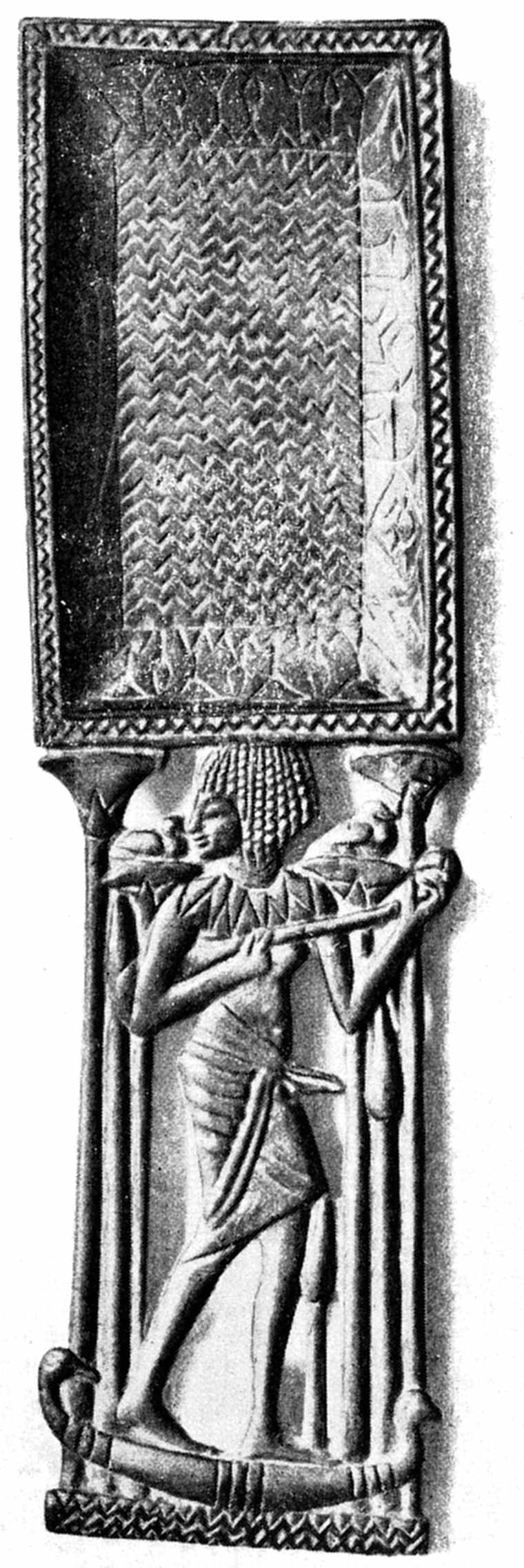 24 Thus in Lepsius (“Denkmäler,” ii., 74e), where the noble Senotmhît, surnamed Mihi, is seated, of heroic stature, while his wife, Khontkaous, is represented crouching and of low stature, although she is a legitimate daughter of the king. In another part of the tomb (Lepsius, “Denkmäler,” ii., 73) the same persons are represented standing side by side and of heroic stature, while their children are of ordinary stature.