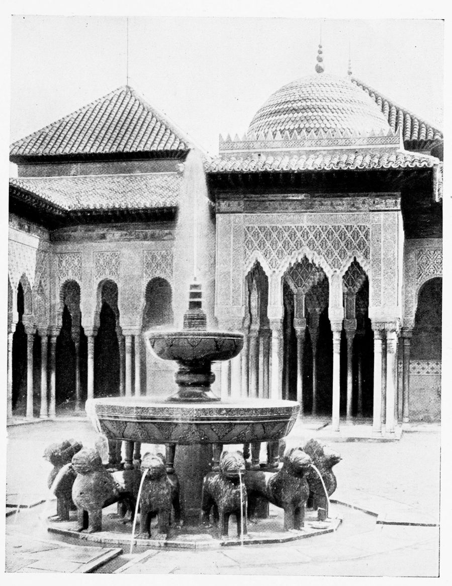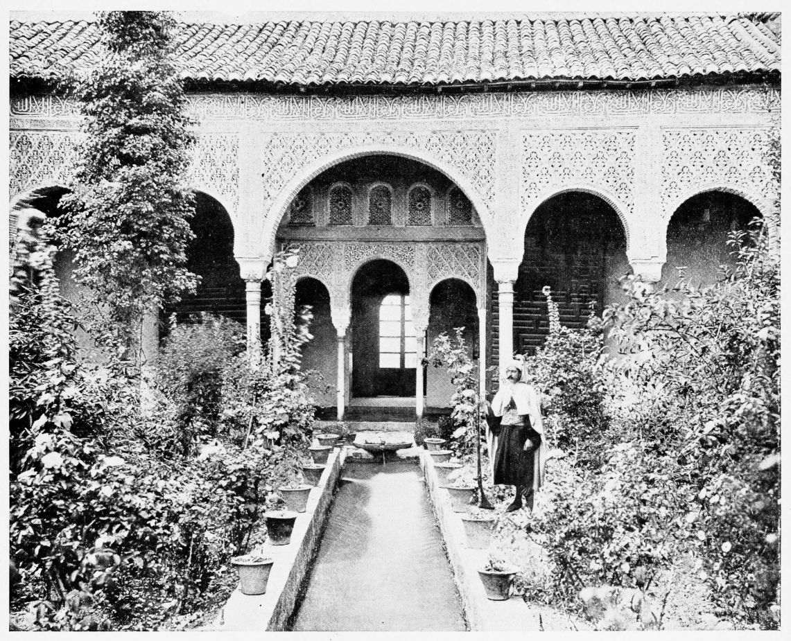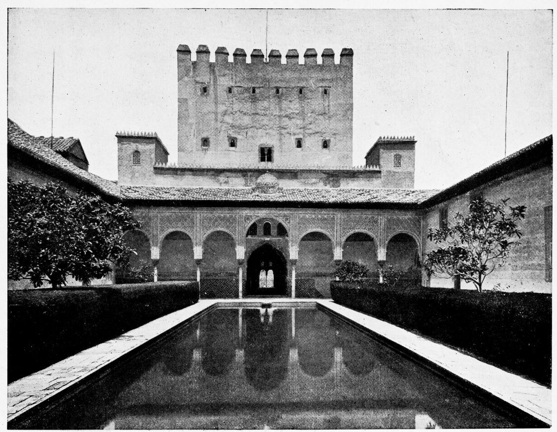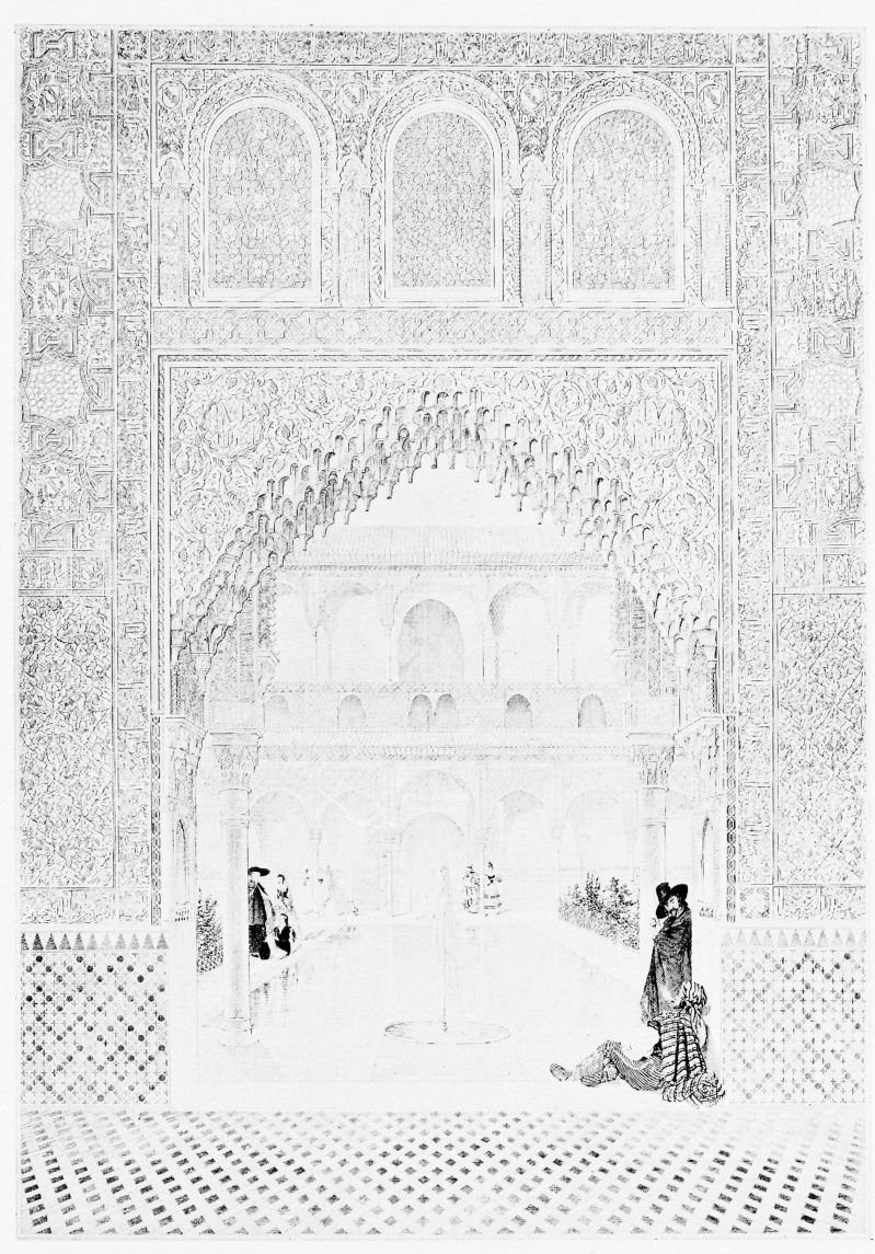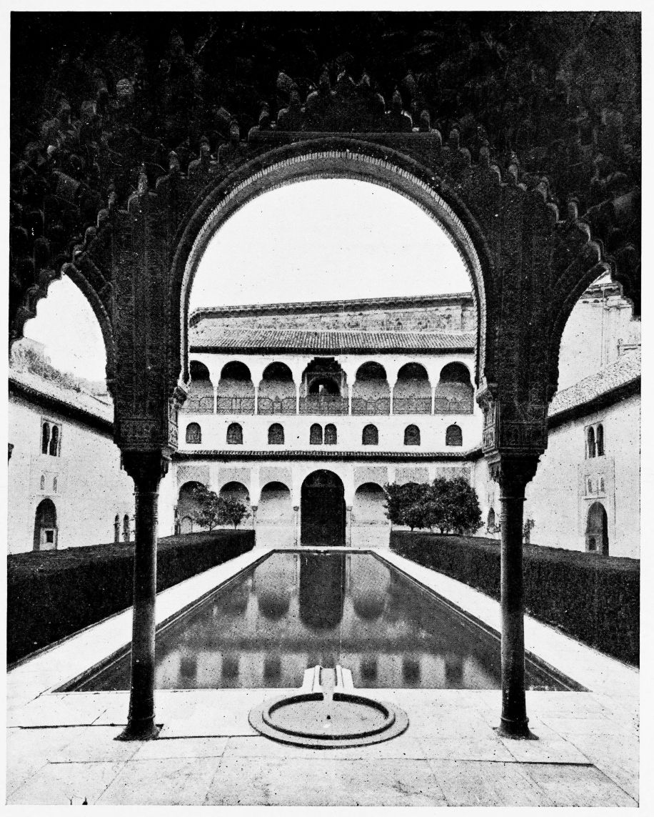 For the historical portions of the description contained in the letterpress I have levied tribute on a variety of authors. The History of the Mohammedan Dynasties in Spain, by the learned Spanish Orientalist, Don Pascual de Gayángos; Raphaël Contreras’ Etude Descriptive des Monuments Arabes; Richard Ford’s reverent appreciations; Dr. R. Dozy’s history; Mr. Stanley Lane-Poole’s The Moors in Spain; Washington Irving’s fascinating writings; and The Alhambra Album, presented by Prince Dolgorouki in 1829, containing the autographs, poems and thoughts of succeeding generations of visitors to Granada, these and many others have been drawn upon in the following pages.