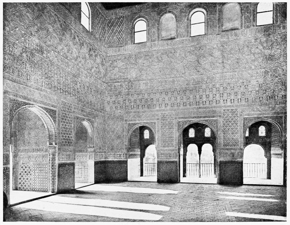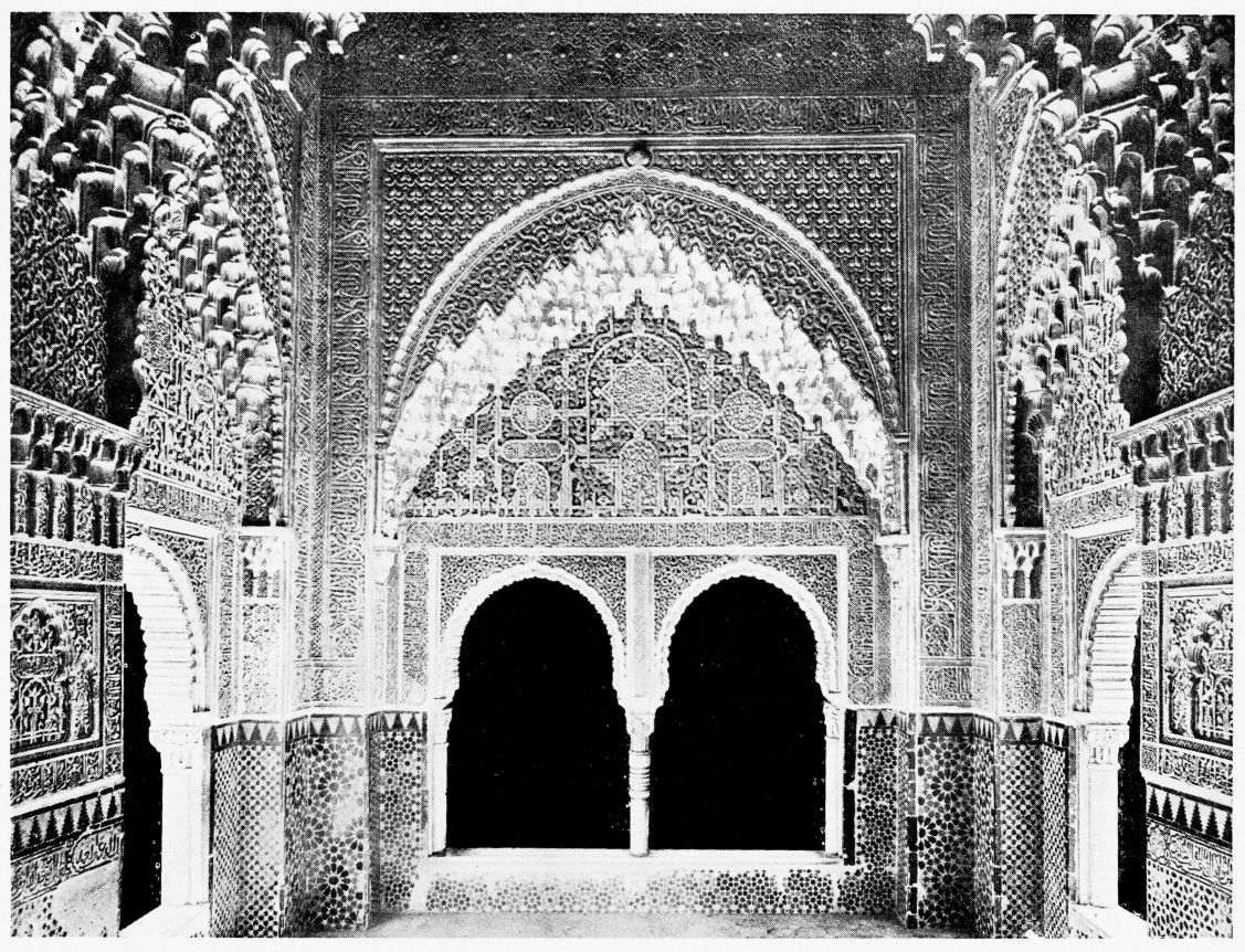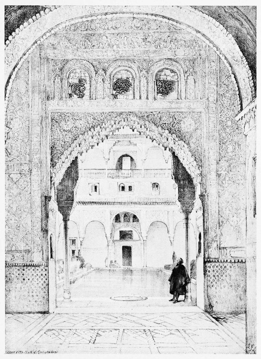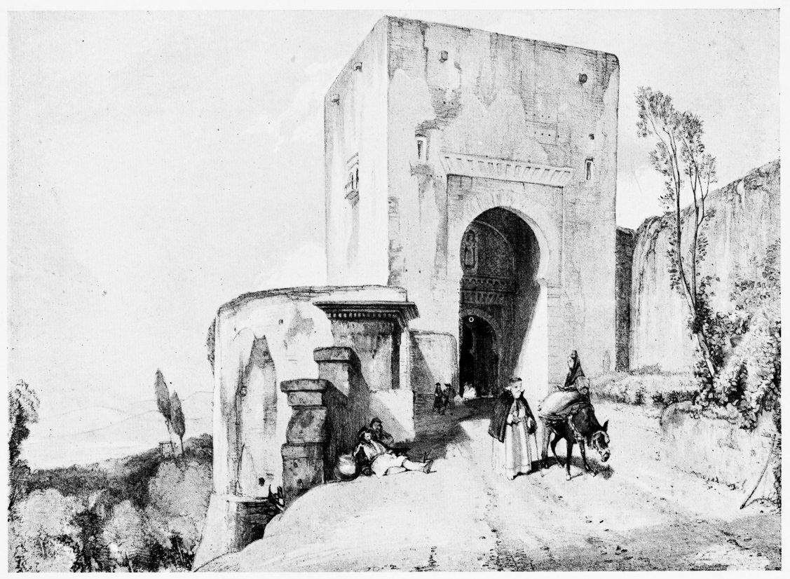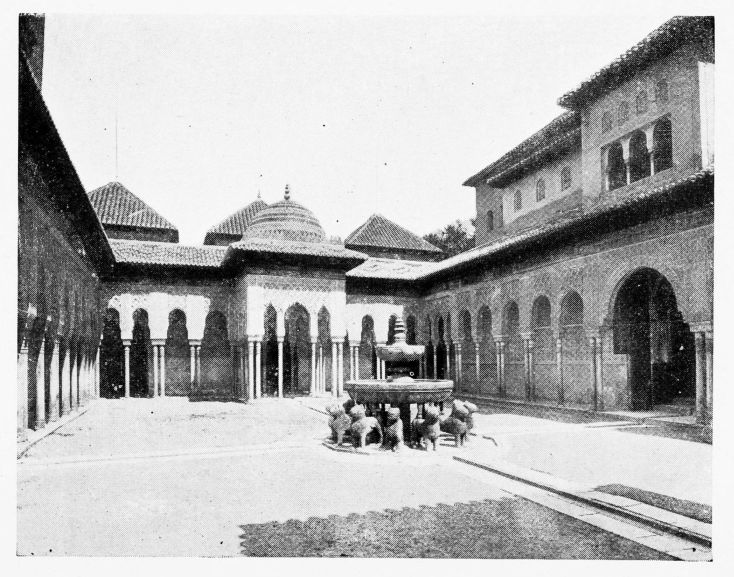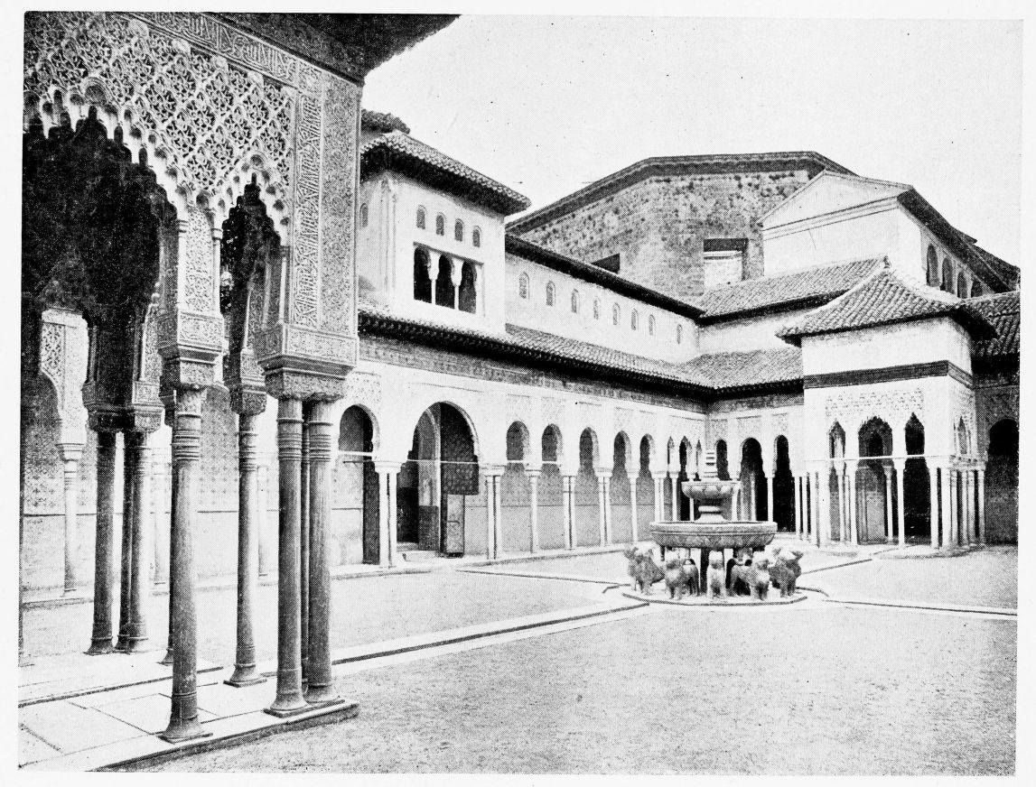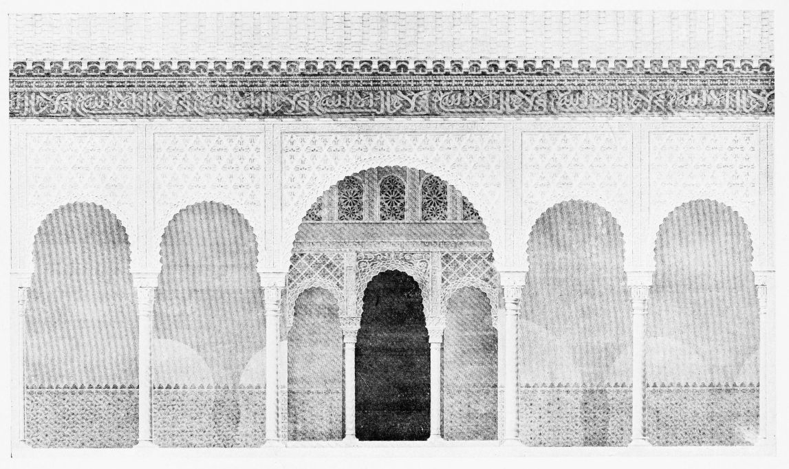For the historical portions of the description contained in the letterpress I have levied tribute on a variety of authors. The History of the Mohammedan Dynasties in Spain, by the learned Spanish Orientalist, Don Pascual de Gayángos; Raphaël Contreras’ Etude Descriptive des Monuments Arabes; Richard Ford’s reverent appreciations; Dr. R. Dozy’s history; Mr. Stanley Lane-Poole’s The Moors in Spain; Washington Irving’s fascinating writings; and The Alhambra Album, presented by Prince Dolgorouki in 1829, containing the autographs, poems and thoughts of succeeding generations of visitors to Granada, these and many others have been drawn upon in the following pages.