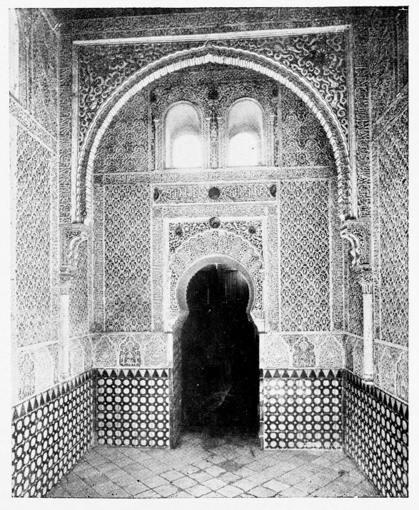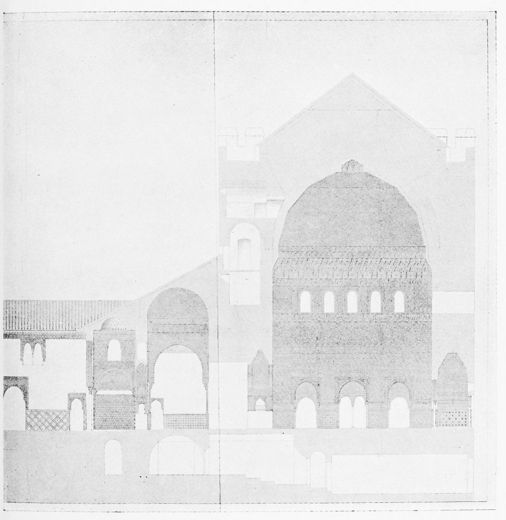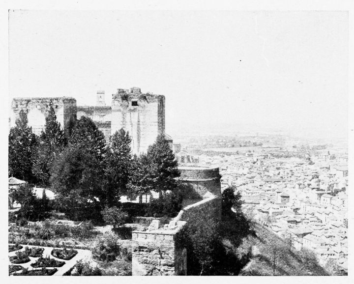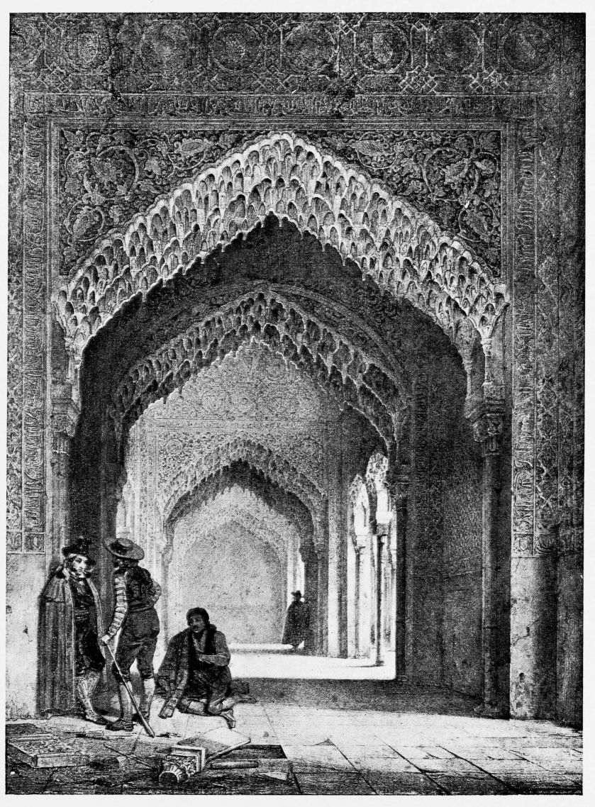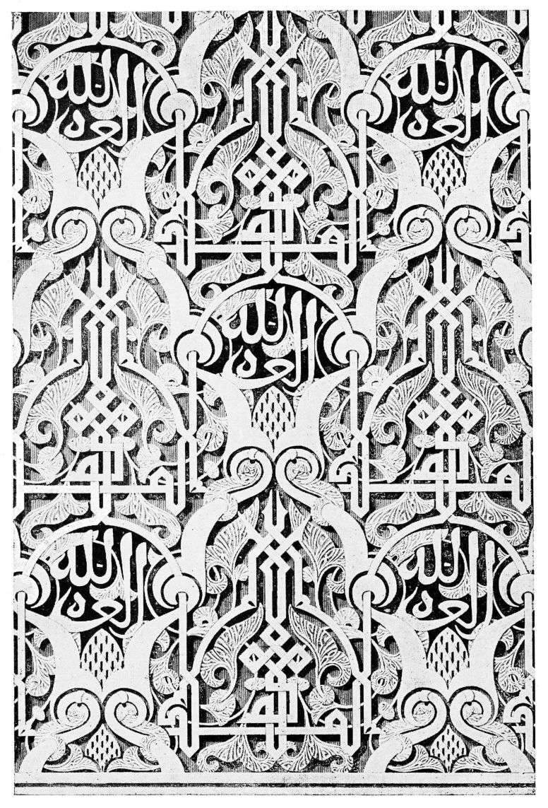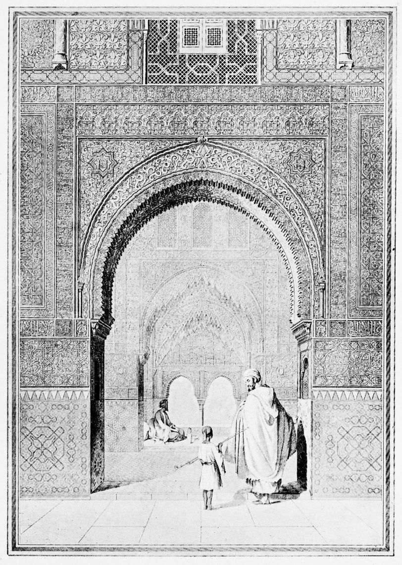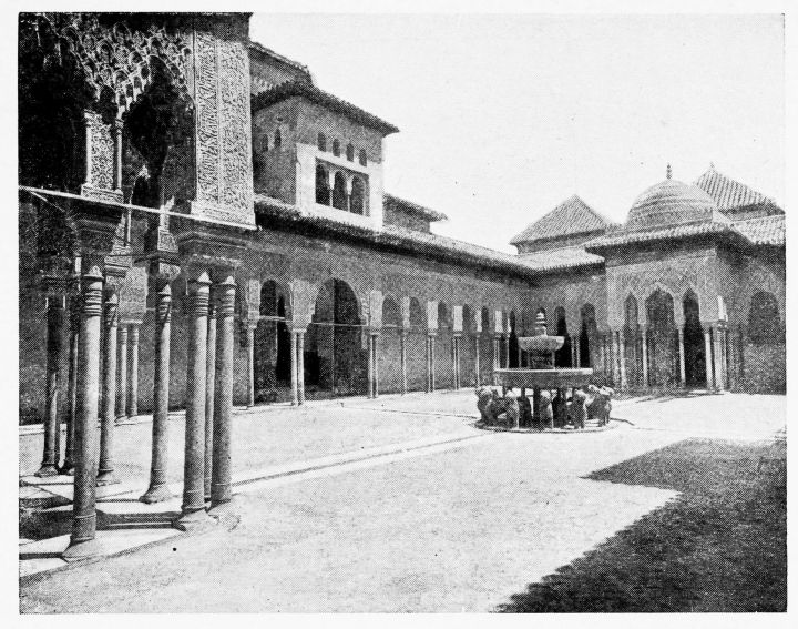 For the historical portions of the description contained in the letterpress I have levied tribute on a variety of authors. The History of the Mohammedan Dynasties in Spain, by the learned Spanish Orientalist, Don Pascual de Gayángos; Raphaël Contreras’ Etude Descriptive des Monuments Arabes; Richard Ford’s reverent appreciations; Dr. R. Dozy’s history; Mr. Stanley Lane-Poole’s The Moors in Spain; Washington Irving’s fascinating writings; and The Alhambra Album, presented by Prince Dolgorouki in 1829, containing the autographs, poems and thoughts of succeeding generations of visitors to Granada, these and many others have been drawn upon in the following pages.