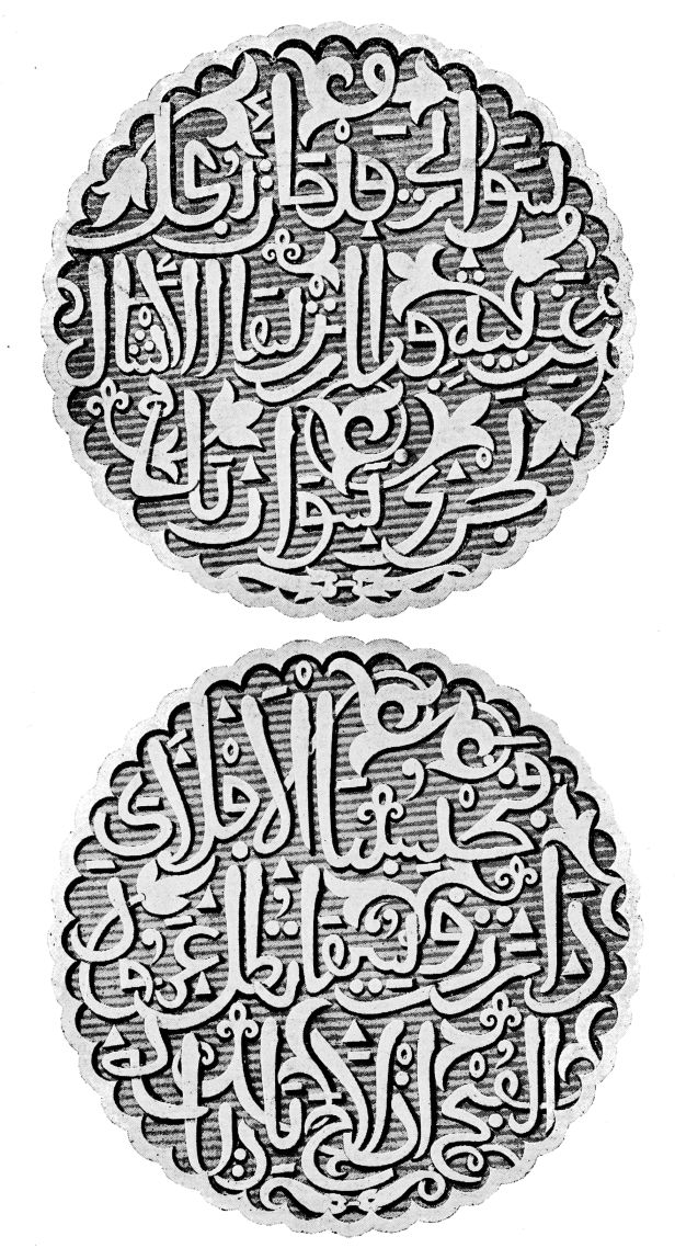 [8] In the Hall of the Ambassadors, or Golden Saloon, is an inscription referring to this:—“The best praise be given to Allah! I will remove all the effects of an Evil Eye upon our master Yúsuf.”