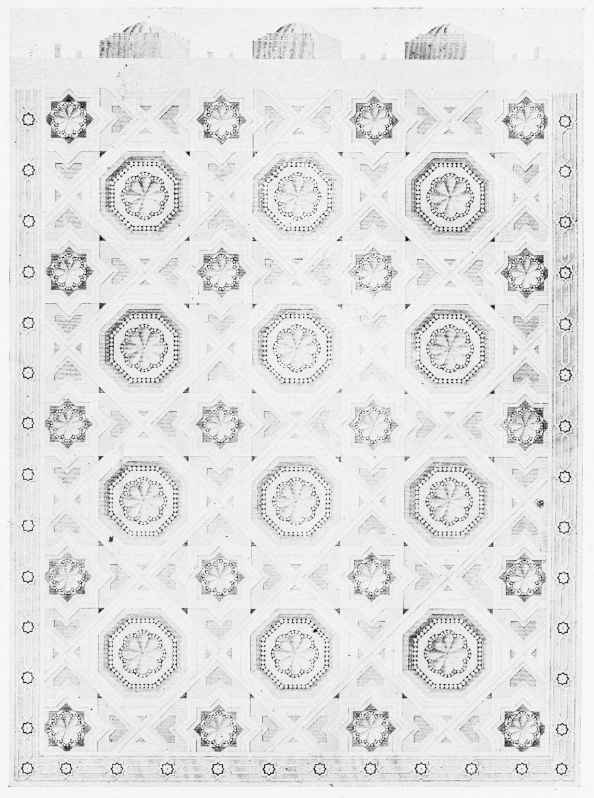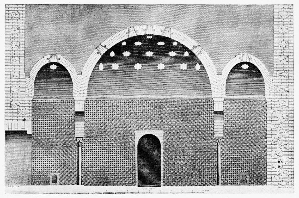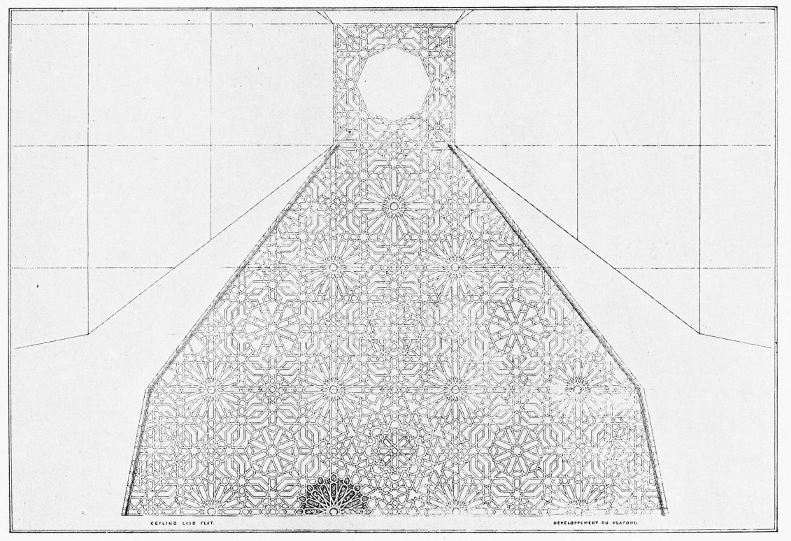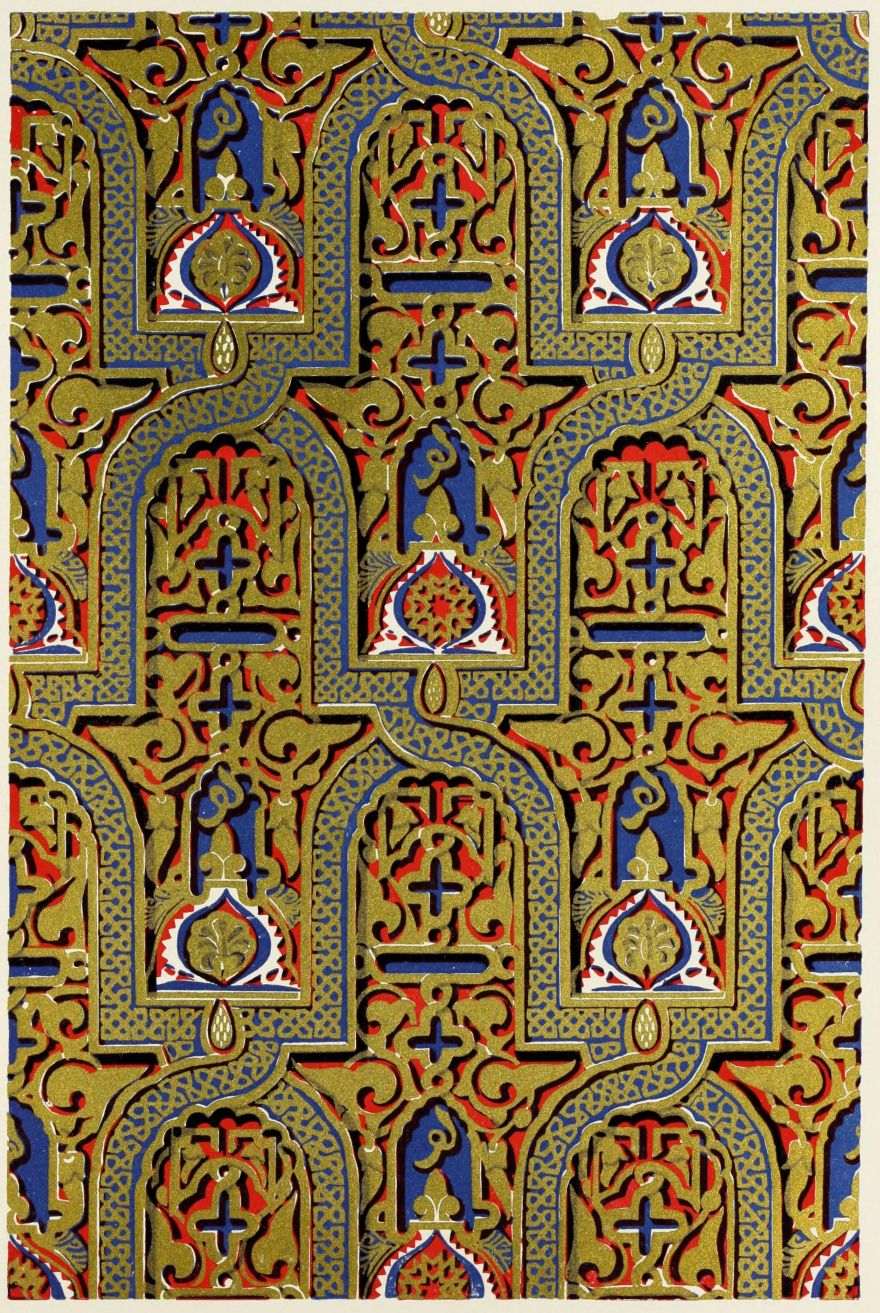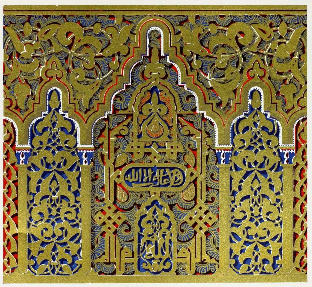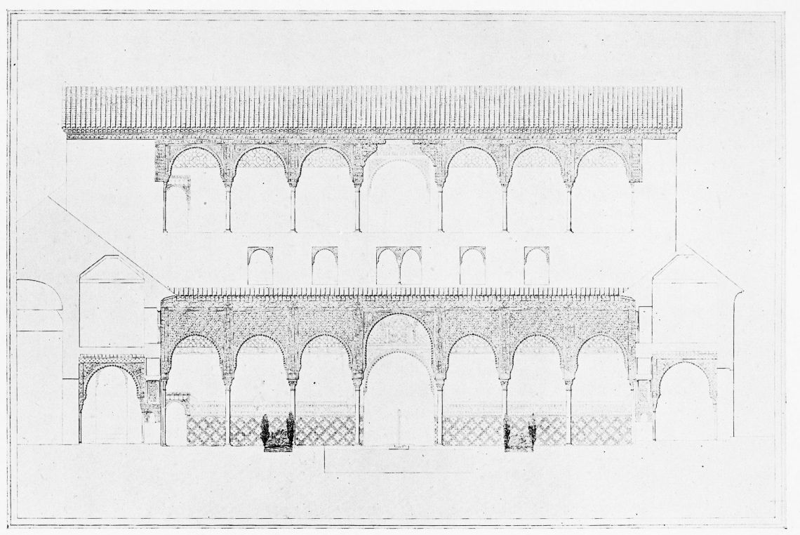 [9] Edited by Pablo Lozano. The antiquities and history of the Moorish domination in Spain remained unheeded until representations were made that research and accurate delineation would alone make their monuments intelligible. The Royal Academy of St. Ferdinand was commissioned to make drawings of the Palace of the Alhambra and of the Mosque of Córdova. The result of their labours were published at Madrid, in 1780, in a folio volume entitled as above, with sixteen plates of Arabic designs, accompanied by a few pages of letterpress. It is an exceedingly rare volume.