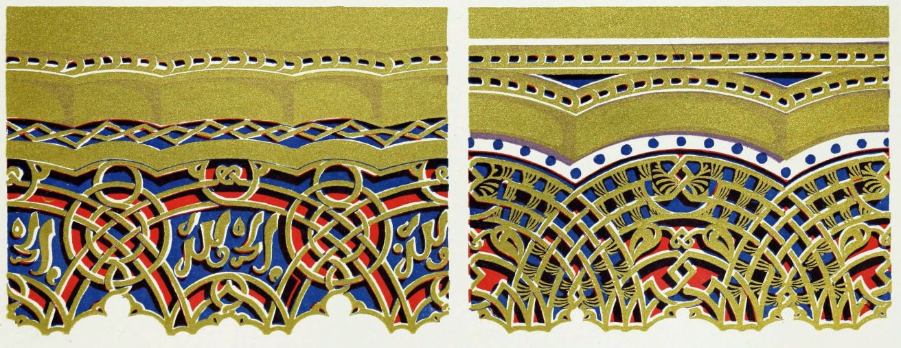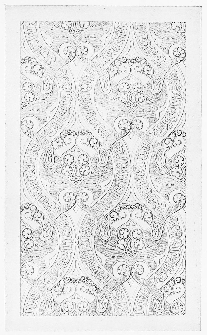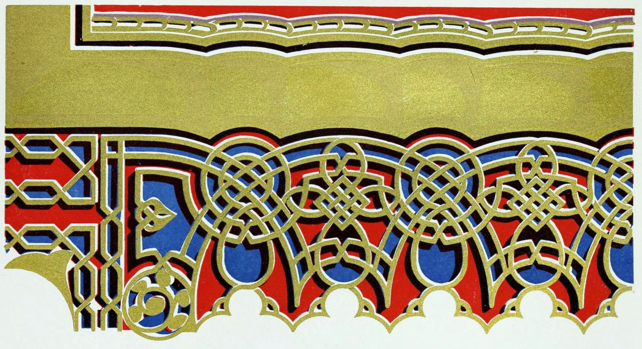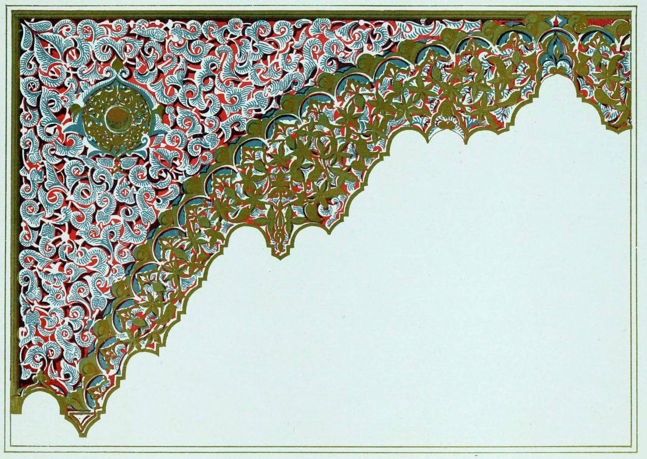 “It is really impossible to do justice, in a journal of this kind, to the sumptuous volume (its price is two guineas and the book is worth it) before us. To do that—to give the reader any adequate notion of the beauty of the illustrations with which it is enriched—we should have to summon all the resources of the colour printer’s art to our assistance, in order to reproduce them in a special edition de luxe of the “P.M.G.” Inasmuch as that is not to be done, we must ask the reader to take it on trust from us that the illustrations of Moorish decorative art are something quite out of the common.... The making of this book must, surely, have been a labour of love; and love’s labour has certainly not been lost.”—Pall Mall Gazette.