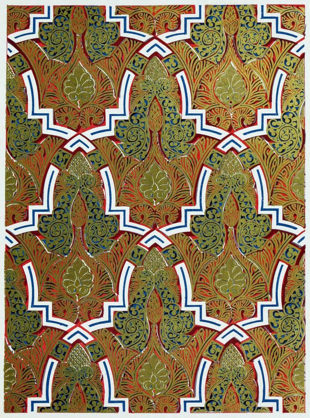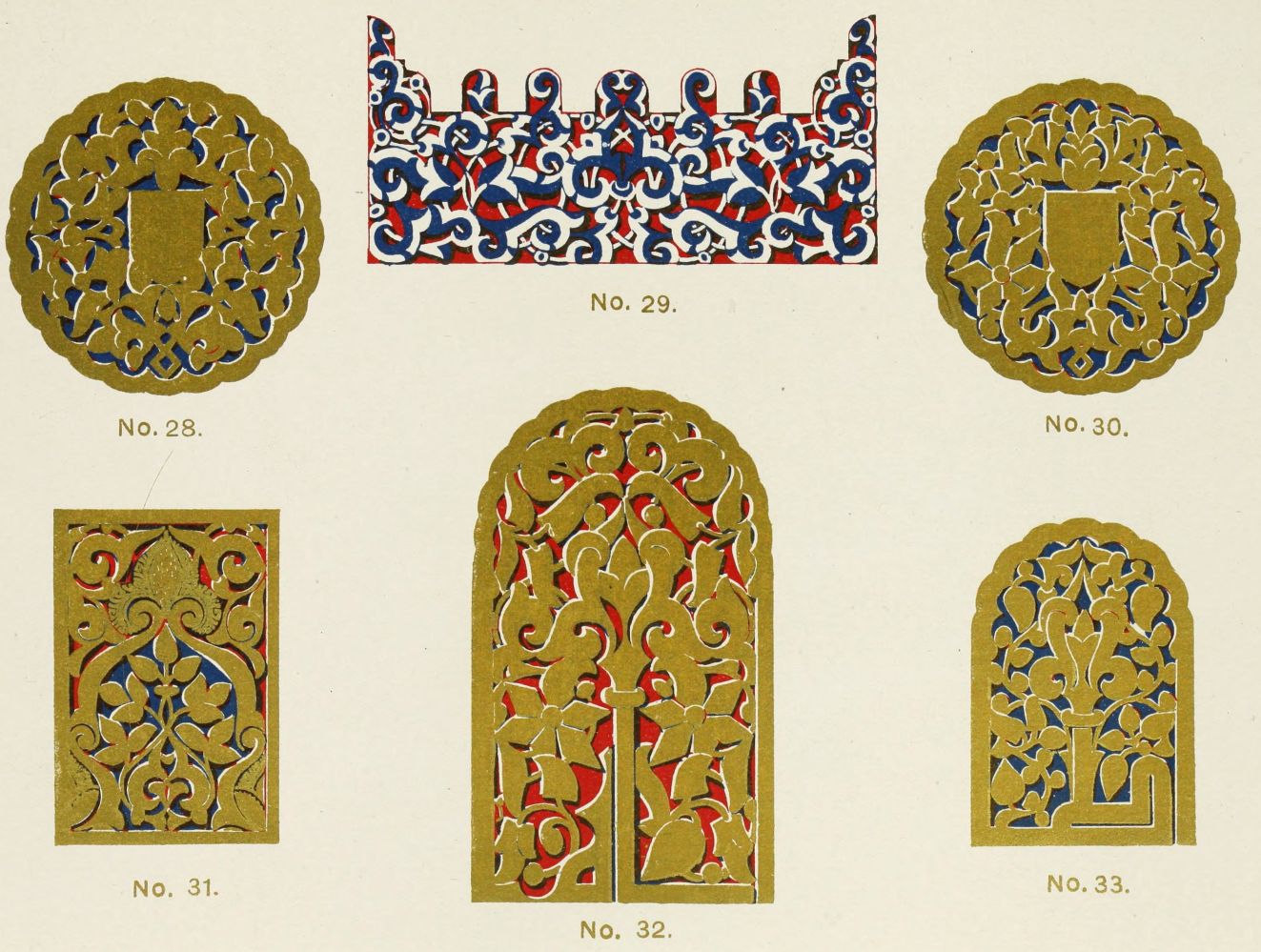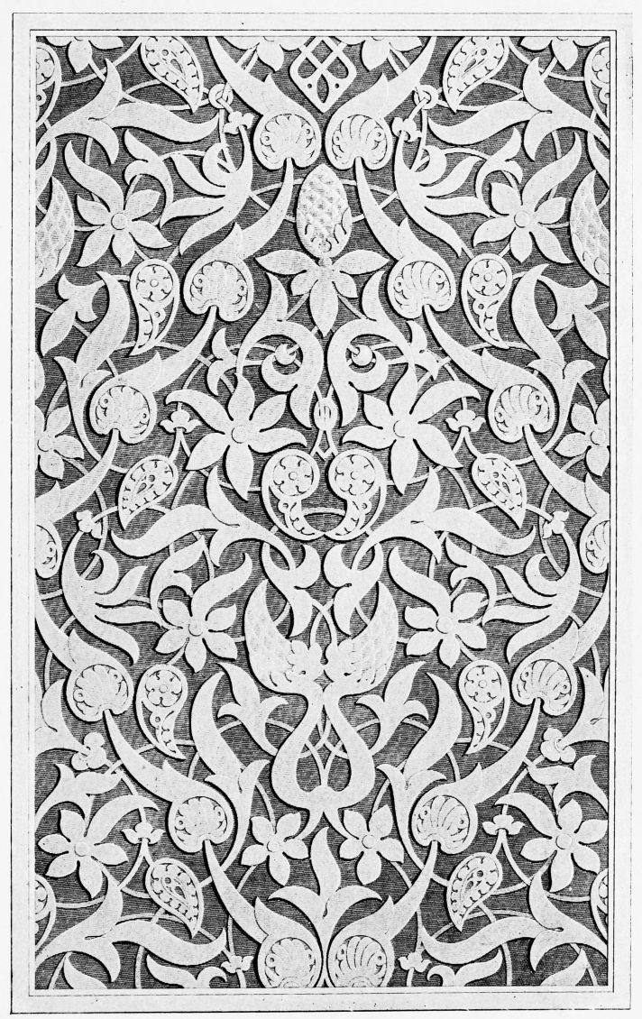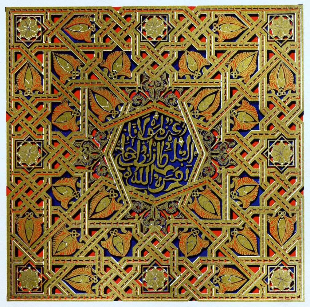 “It is really impossible to do justice, in a journal of this kind, to the sumptuous volume (its price is two guineas and the book is worth it) before us. To do that—to give the reader any adequate notion of the beauty of the illustrations with which it is enriched—we should have to summon all the resources of the colour printer’s art to our assistance, in order to reproduce them in a special edition de luxe of the “P.M.G.” Inasmuch as that is not to be done, we must ask the reader to take it on trust from us that the illustrations of Moorish decorative art are something quite out of the common.... The making of this book must, surely, have been a labour of love; and love’s labour has certainly not been lost.”—Pall Mall Gazette.