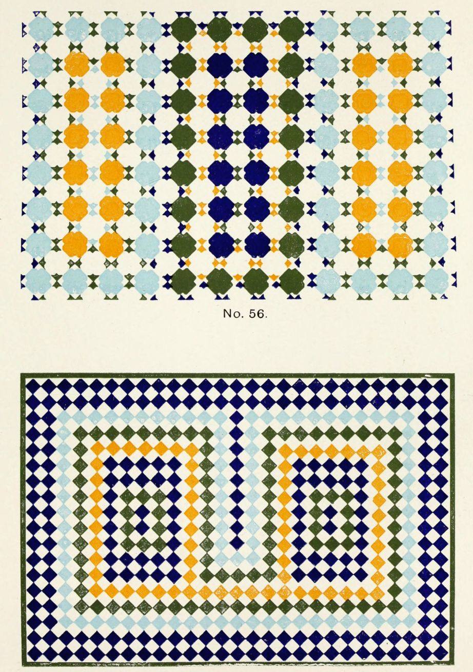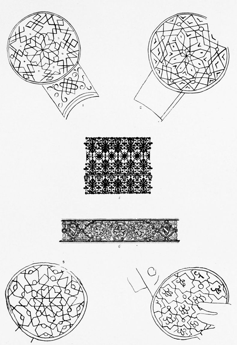 “Just when the new Spanish marriage is attracting attention to a country of departed greatness, Mr. Calvert’s volume appears with the courtliest of dedications to His Majesty Alfonso XIII. In many respects this handsome volume is a timely wedding present for his Spanish Majesty, as it is a gorgeous literary tribute to the beauty of the jewels in the Spanish Crown—Cordova, Seville, and Toledo. Mr. Calvert is an enthusiast and an antiquary.... The author himself allows us to regard his volume in the main as a picture book, and we can imagine that many a designer who eschews the noble simplicity of fresh forms and the Christian aspiration of Gothic art will turn with profit to the wealth of plates here bestowed. The coloured plates are gorgeous rather than delicate; for that we{484} must thank the Moors, and marvel at the inventiveness of their artist geometricians.”—Antiquary.