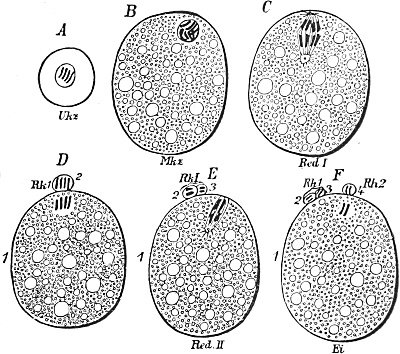 We have endeavoured to explain the handing on of the complement of heritable qualities from one generation to another as due to a continuity of the germ-plasm, and we assumed that the germ-cells never arise except from cells in the 'germ-track'; that is, from cells which are equipped, from the fertilized egg-cell onwards, with a complete sample of slumbering germ-plasm, and are thereby enabled to become germ-cells, and, subsequently, new individuals, in which the aggregate of inherited primary constituents implied in the germ-plasm can again attain to development.