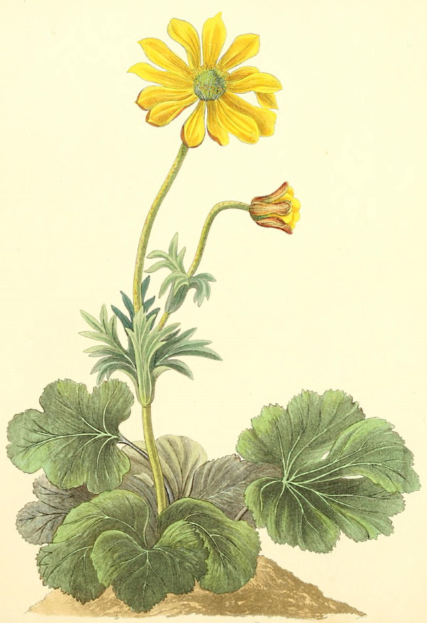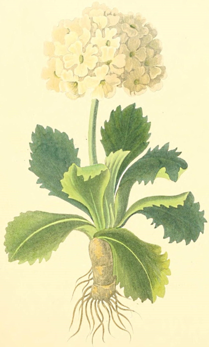 This plant is a native of Switzerland, and was introduced into this country about the year 1596. It is the parent of all the beautiful varieties of Auricula, which are now cultivated in our gardens. It grows low, and, like many of the genus, is suitable and ornamental for rock work. The Primulas flourish most in a mixture of loam, decayed leaves, and bog earth, and, like all Alpine plants, require a pure atmosphere. The leaves of this species are apt to vary in form, the margins occasionally being entire. Some of the most beautiful are the following:—