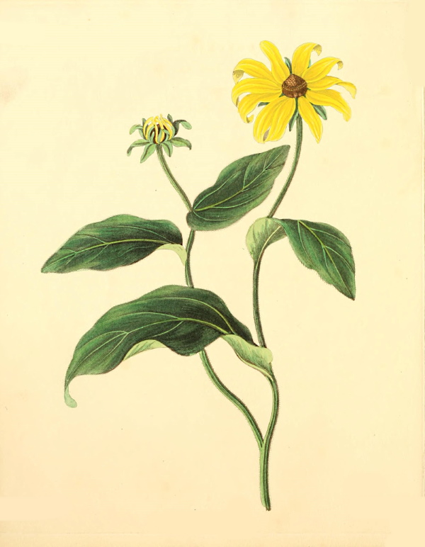 This is perhaps one of the most desirable species of the genus Helianthus, from the brilliancy of the colour and its moderate growth. It makes a striking appearance when planted at the back of the flower borders, and will continue in beauty to a late period in the autumn. According to Pursh it is found in the "western parts of Pennsylvania," and was introduced into this country in 1732. It will grow well in any good garden soil, and may be increased by parting the roots. There are not many species of this genus suitable for a flower garden, as they grow to such a large size, and take up so much room: the best are