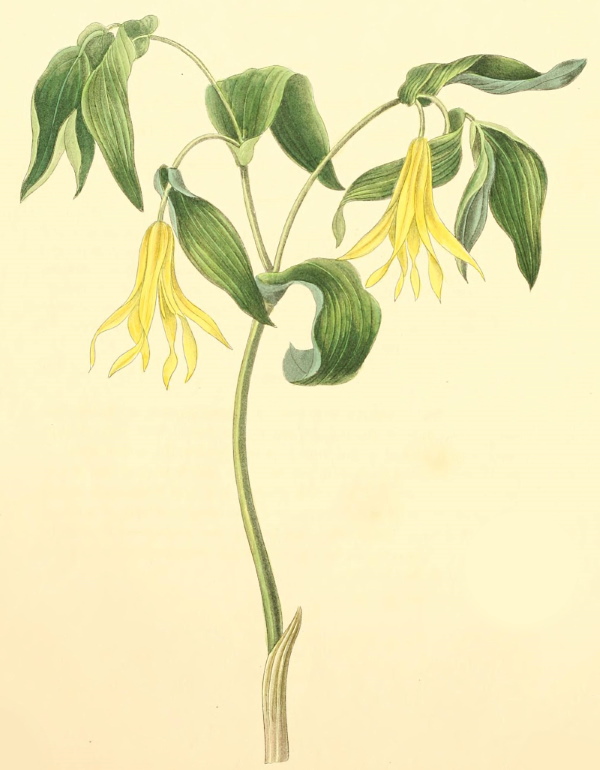 Bulb small—leaves numerous, radical, linear, lanceolate—flower enclosed with the leaves in a membranous sheath—-corolla yellow, divided into six oval-shaped petals, the three outer divisions beautifully marked with green—stamens three—filaments short—anthers sagittate—style one—stigma divided into three parts.