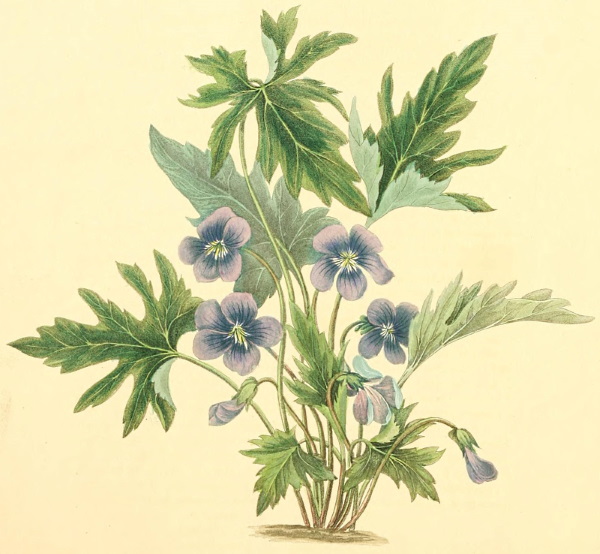 Root fibrous—leaves radical, three-lobed, on long petioles—stem simple, erect, pubescent—one-flowered calyx of three leaves—corolla blue—six petals, oval-shaped—stamens numerous, fixed to the receptacle—styles many—stigmas obtuse.