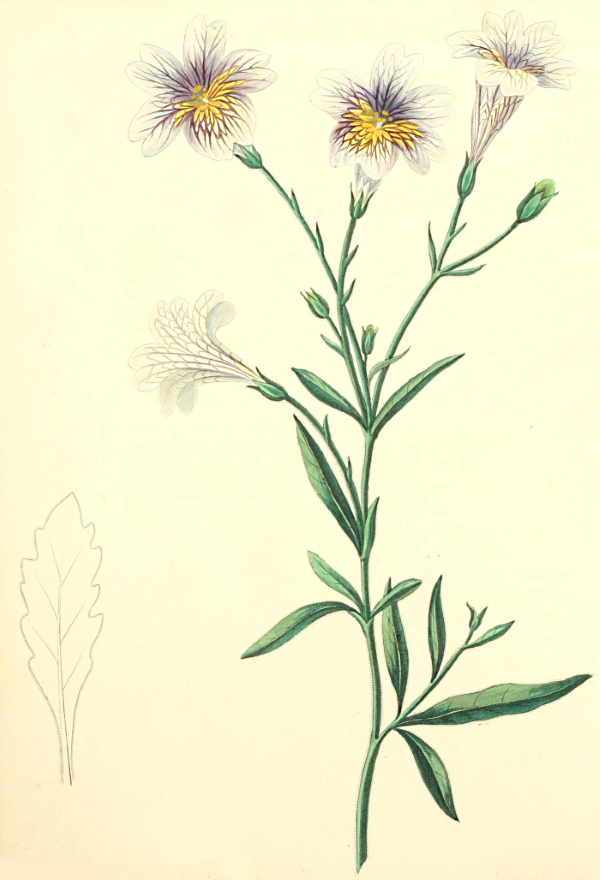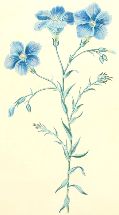 This is perhaps the finest and most beautiful species of Linum, and bears the largest flowers of any of the hardy kinds. It is a very desirable garden plant, continuing long in bloom, and forming a pleasing variety from its glaucous foilage. It is a native of Spain, Italy, and the south of France, and was introduced into this country about the year 1759; though we are not aware that any figure of it has before been given. This species may be raised from seed, which is produced in abundance; if sown in light rich soil, and protected through the winter, the young plants will flower the following summer, and attain the height of eighteen inches or two feet when in perfection. It is very hardy—this genus does not afford many ornamental species for a flower garden, the most desirable are,