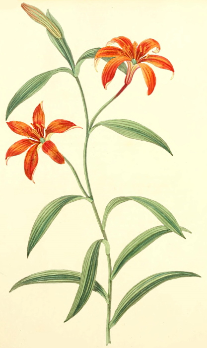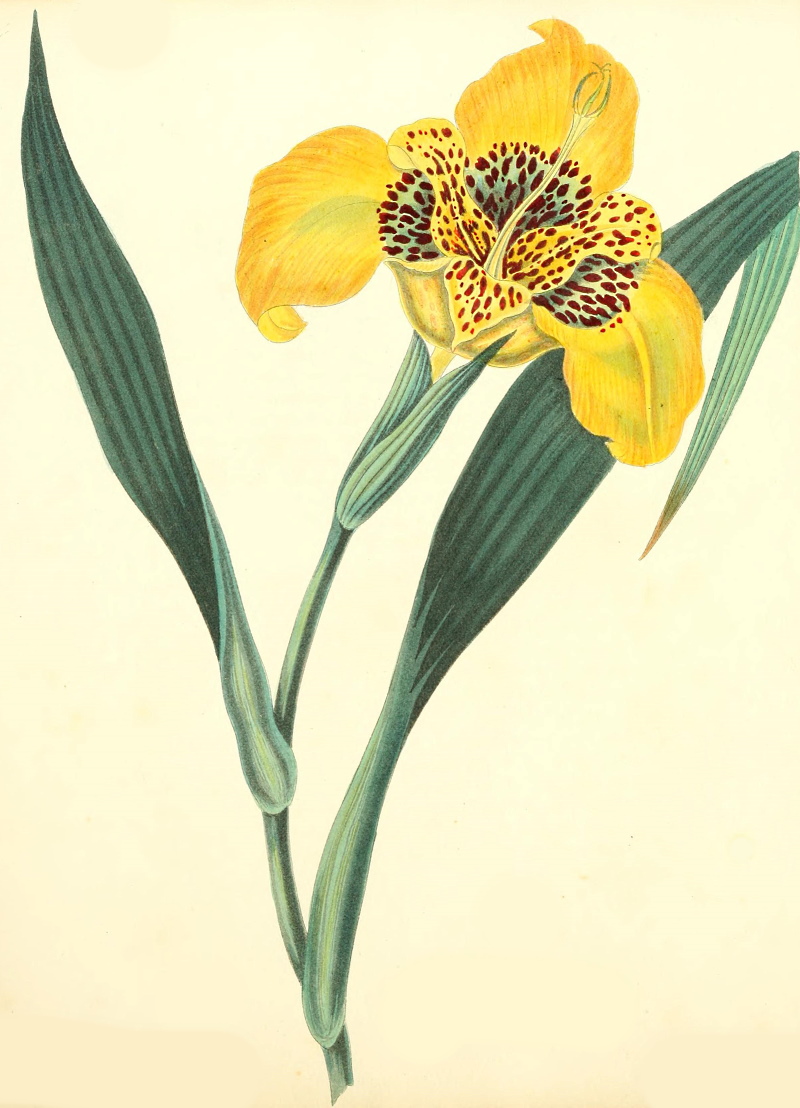 This is one of the most splendid plants which has been introduced into this country. It is a native of Mexico, and was brought thence by Mr. Bullock, in 1824. On its first flowering here, it was considered a variety only of T. pavonia, but upon careful examination they appeared to be perfectly distinct. This is satisfactorily proved by Mr. Sweet, in his B. F. G. p. 128. The bulbs may be planted early in the spring in light sandy soil, and placed in a green-house or frame, as it facilitates their flowering: when the weather permits, the roots should be taken out of the pots and put into the open air, in a warm sheltered situation, where they will make a brilliant appearance for a considerable time—when they have done flowering, the roots require to be taken up and kept dry during the winter. The only species with which we are yet acquainted, besides the one figured, is T. pavonia.