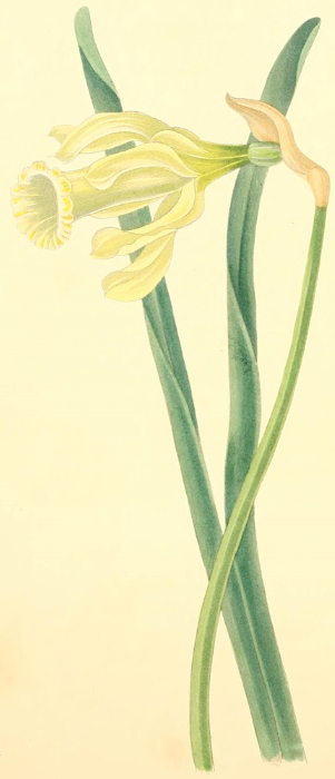This plant is one of the least common and most beautiful of the genus, and is remarkable for the peculiar delicacy of its colour. It is a native of Spain, and was introduced into this country about the year 1759. It requires a light rich soil; and, like all other bulbs, ought only to be removed when the leaves decay. The plant grows from twelve to sixteen inches high, and flowers in April. The genus Narcissus is a very numerous and beautiful one, and affords a delightful variety. Some of the most ornamental are