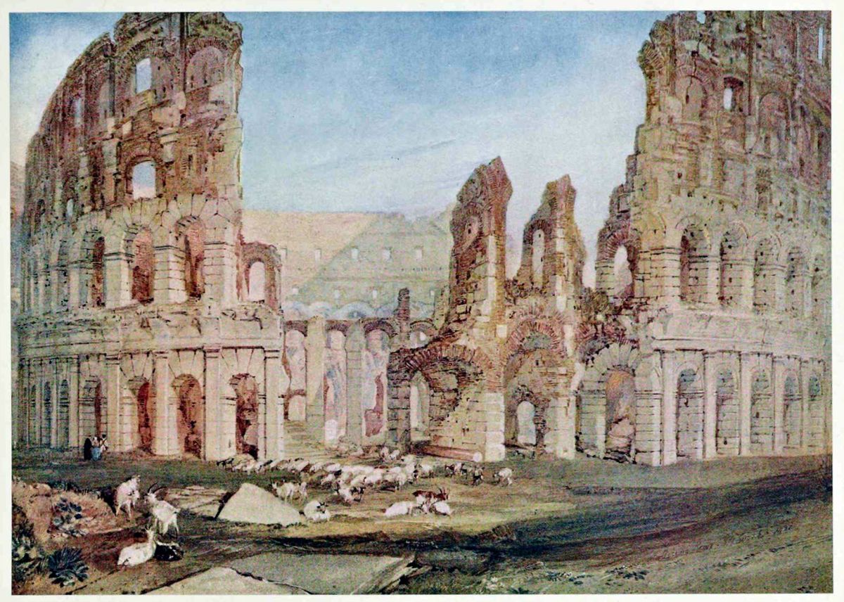 INSCRIBED AND SIGNED “COLLICEUM, ROME, J. M. W. TURNER, 1820.” SIZE 11” × 15½".