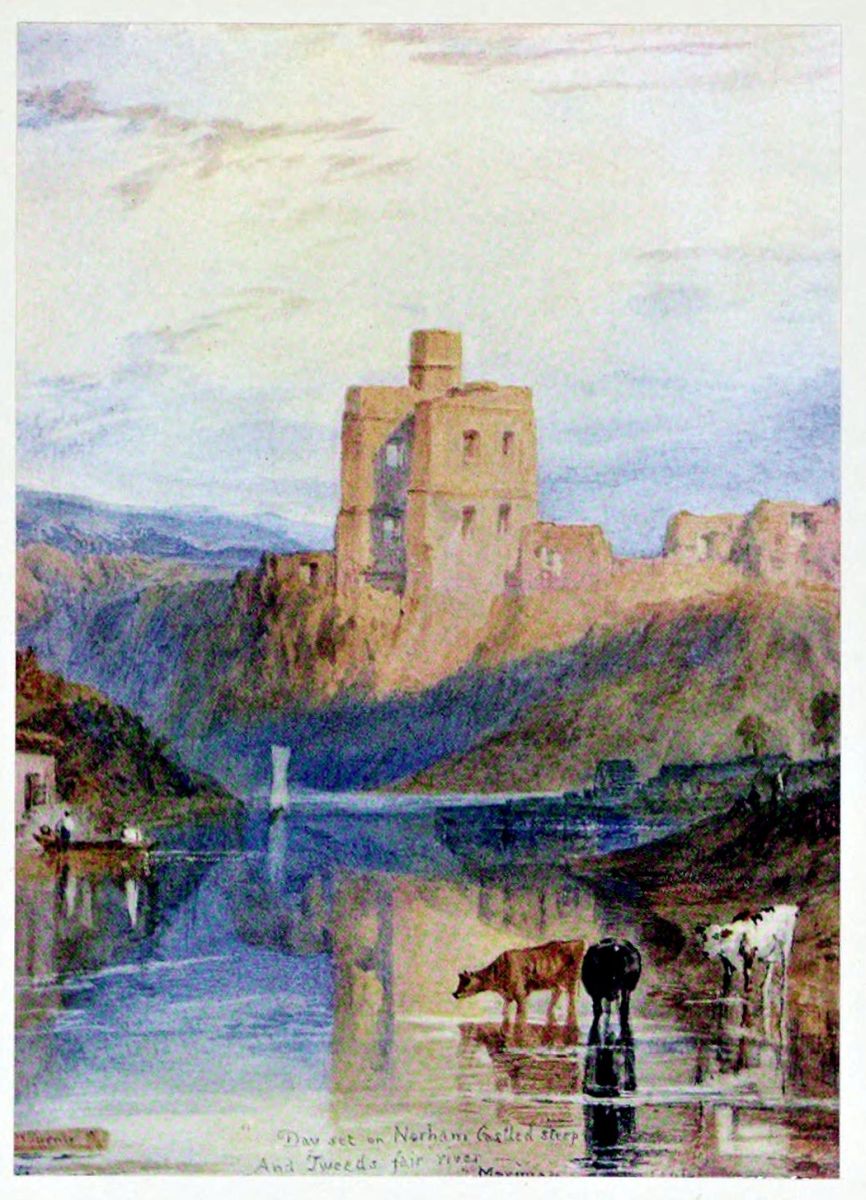 —was seething in his mind and crying out for definite embodiment. These pictures were ready for exhibition at the Royal Academy in May 1818. In June Mr. Fawkes and his wife were in London. Two of Mr. Fawkes’s sons by his first marriage were at Eton, so we find the following entry in Mrs. Fawkes’s diary on the 4th of June: “Went to Eton to see the boat-race. Dined and slept at Salt Hill. Little Turner came with us.” That “little” Turner’s thoughts were not taken up entirely with the boat-race and the social pleasures of the visit is proved by the lovely sepia drawing of Windsor Castle from Salt Hill, which was admirably engraved by Charles Turner for the “Liber Studiorum,” though it was never published. Soon after this visit to Eton Turner went to Scotland to make sketches to illustrate “The Provincial Antiquities of Scotland,” for which Sir Walter Scott (then plain Mr. Scott) had agreed to furnish the letterpress. Scott would have preferred the employment of his friend the Rev. John Thomson, of Duddingston, as the illustrator of this work, but Lockhart and the publishers stood out for Turner. Scott finally gave way and wrote that he “supposed he must acquiesce” in the selection of Turner, “because he was all the fashion.” Turner’s subjects were chosen for him and the work proved remarkably successful. Turner’s exquisite water-colours were presented by the publishers to Sir Walter Scott, who had them all framed together (in a very unsuitable way, it must be confessed) and kept them hung in his study at Abbotsford until his death.