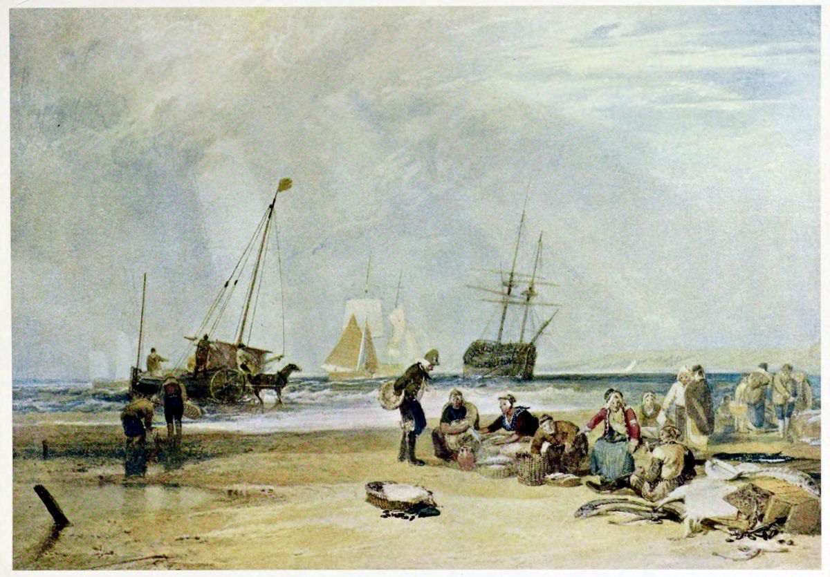 A slightly different version in oils of this design, known as Fish Market at Hastings, was painted some years earlier for Mr. Jack Fuller. It was sold at Christie’s recently in the Acland-Hood sale.