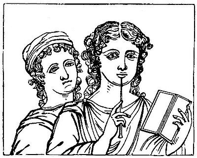 ACCŬBĀTĬO, the act of reclining at meals. The Greeks and Romans were accustomed, in later times, to recline at their meals; but this practice could not have been of great antiquity in Greece, since Homer always describes persons as sitting at their meals; and Isidore of Seville, an ancient grammarian, also attributes the same custom to the ancient Romans. Even in the time of the early Roman emperors, children in families of the highest rank used to sit together, while their fathers and elders reclined on couches at the upper part of the room. Roman ladies continued the practice of sitting at table, even after the recumbent position had become common with the other sex. It appears to have been considered more decent, and more agreeable to the severity and purity of ancient manners, for women to sit, more especially if many persons were present. But, on the other hand, we find cases of women reclining, where there was conceived to be nothing bold or indelicate in their posture. Such is the case in the preceding woodcut, which seems intended to represent a scene of matrimonial felicity. For an account of the disposition of the couches, and of the place which each guest occupied in a Greek and Roman entertainment, see Symposium and Triclinium.