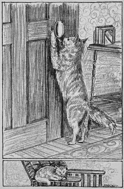 The gentleman said that there never was a cat that could fight like Pete. He was not afraid of anything that walked and could whip any dog that ever came into the yard. When he made up his mind that he did not want any dog or certain cats around the house or yard it was then that they had to leave. He would sometimes make up with a cat after giving him a good flogging if the cat was willing to stay long enough to make up. He was an awful fighter and yet he was of a good disposition around the home. Of all the kittens this lady had and loved and cared for there was none so loveable and of a better character than Pete. If it had not been for his fighting nature he would have been an ideal cat in every way. Perhaps the brave spirit he showed helped him to protect[71] himself from cruel dogs and mean cats.