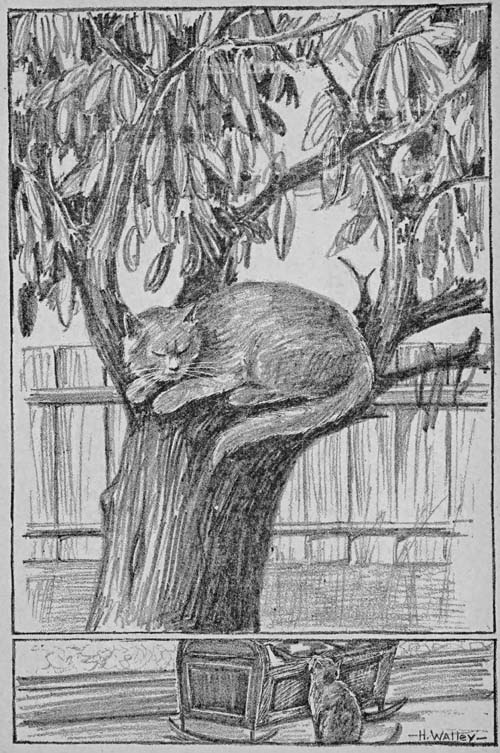 In the yard of the home there was an old tree in which Sammy spent many happy hours in the warm sunshine. Not many feet from the ground the tree forked and this made a very desirable place to get out of the reach[52] of dogs and to rest or sleep. This had been a favorite resting place for Trilby, a kitten that lived in the home long before Sammy was born. The lady said that both kittens had used the old tree for a resting place and that she had often regretted that she had not taken their pictures. I am sorry, too, as I would like to have shown you the picture of Sammy in this book, but we will have to imagine how peaceful he was as he slept in the warm sunshine.
