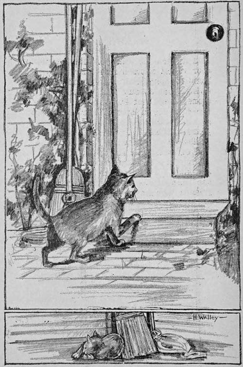Tiger was one of these tramp kittens in his young days. He had been cast out from his home as an undesirable kitten. Days and nights he wandered around in the town in which he had been left but no one seemed to care[44] for a homeless kitten. Sometimes he was able to find enough to eat but many nights he slept in an alley, cold and hungry.