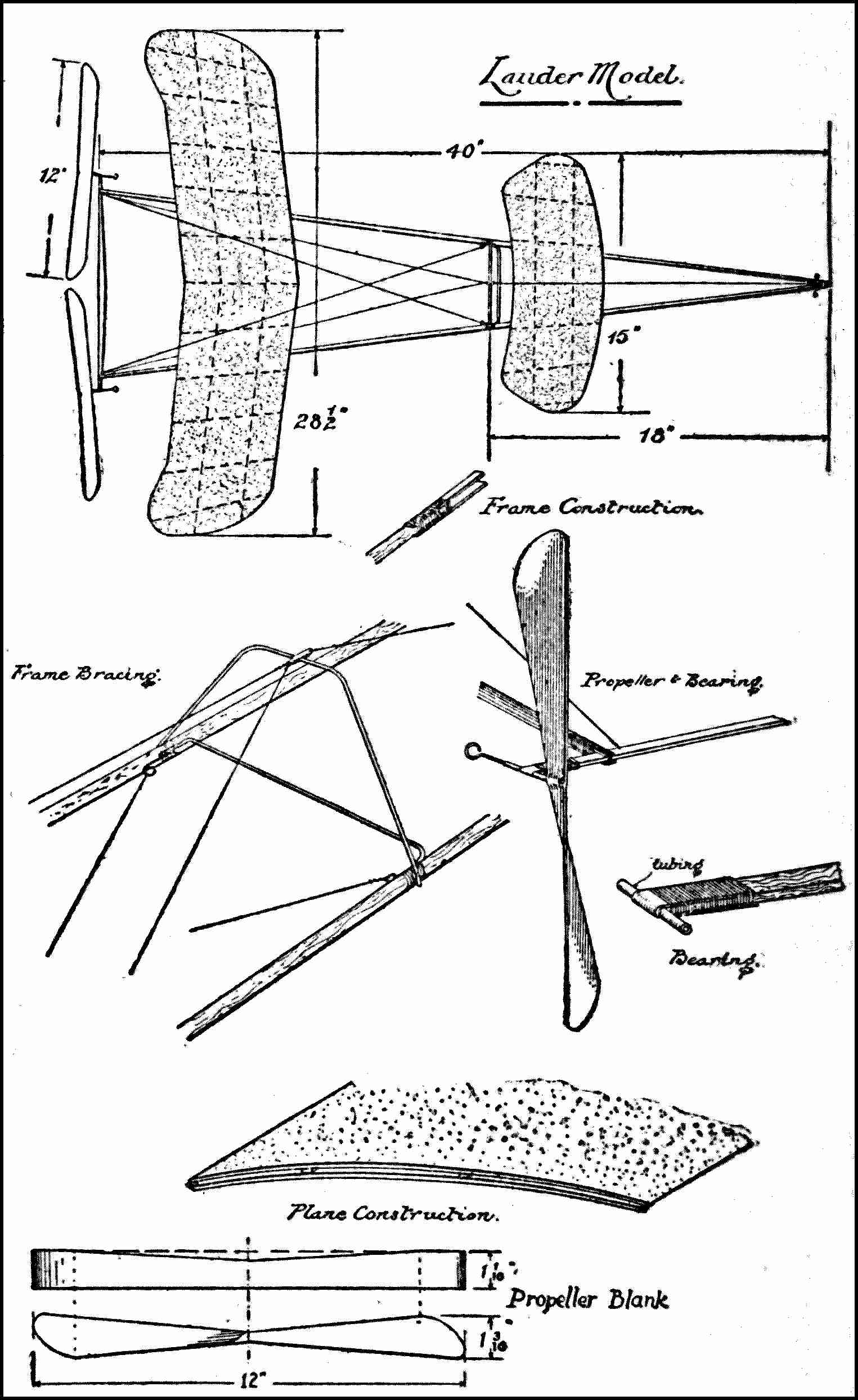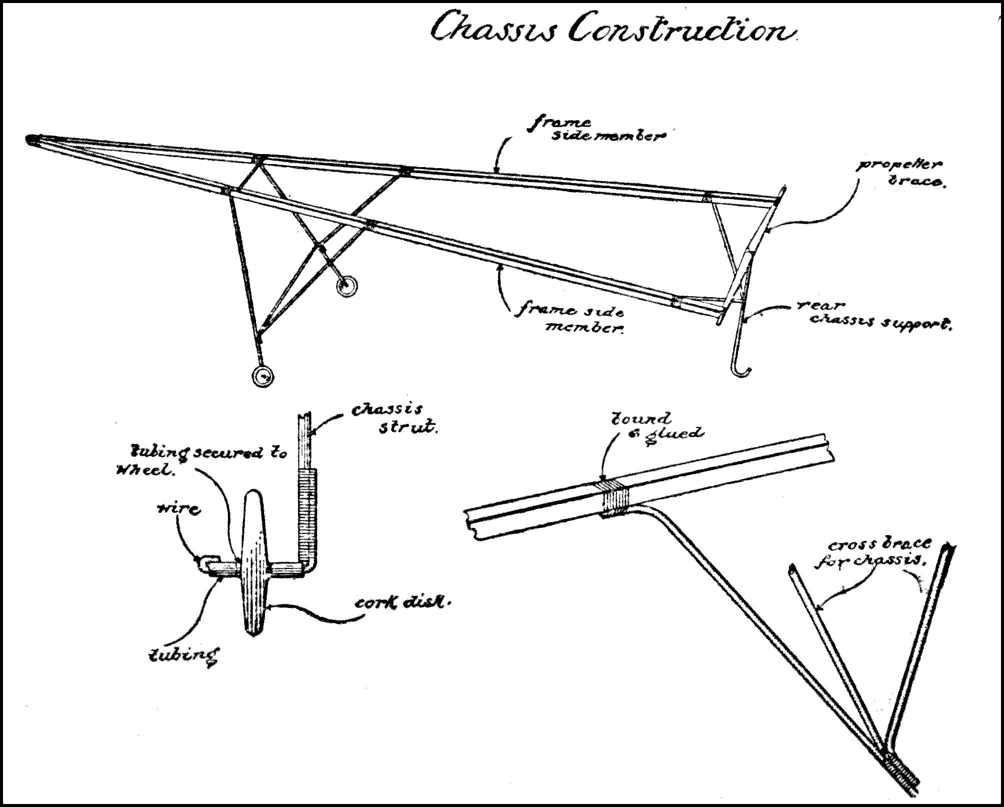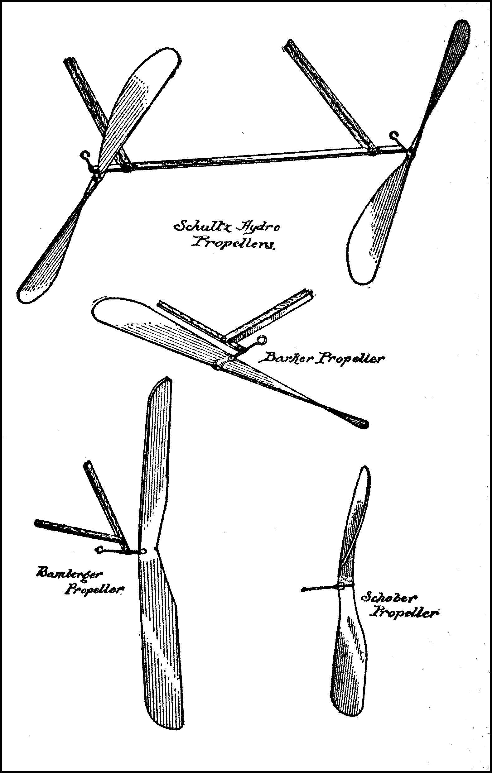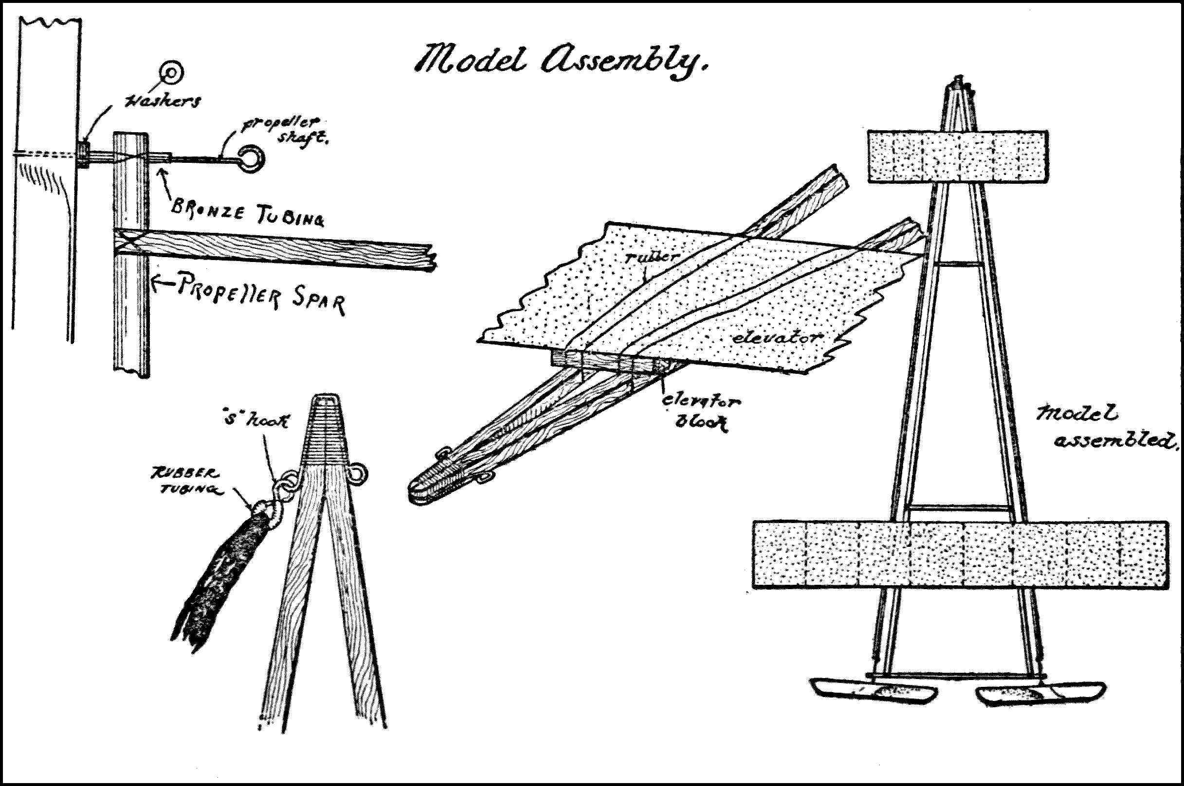 Motive Power—In connection with model aëroplanes a number of rubber strands evenly strung from the propeller shaft to the frame hooks which while unwinding furnish the necessary power to propel the model.