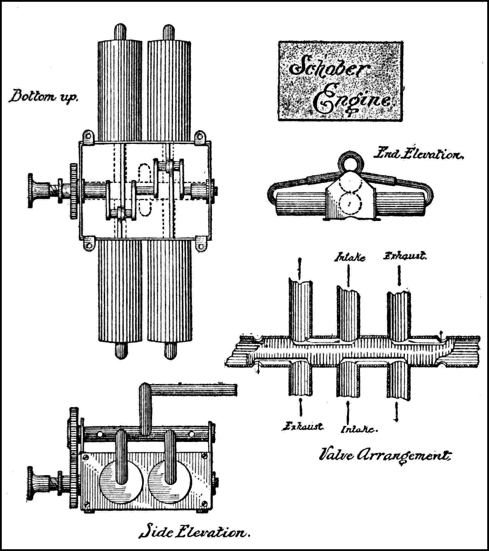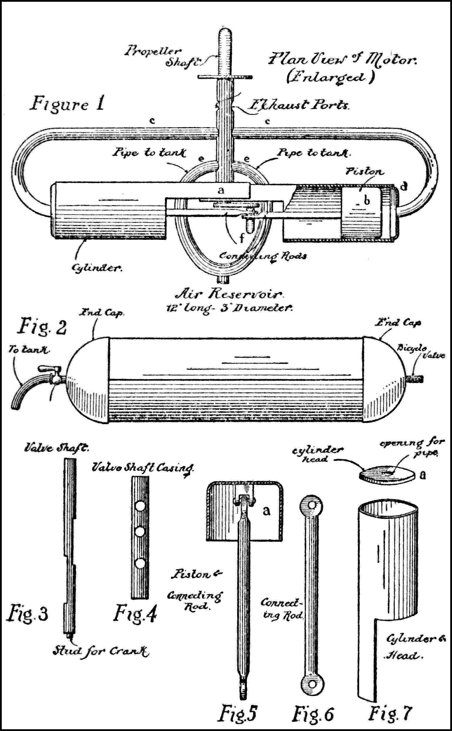 Wise Compressed Air Engine—Schober-Funk Three Cylinder Engine—The Schober Four Cylinder Opposed Engine. |