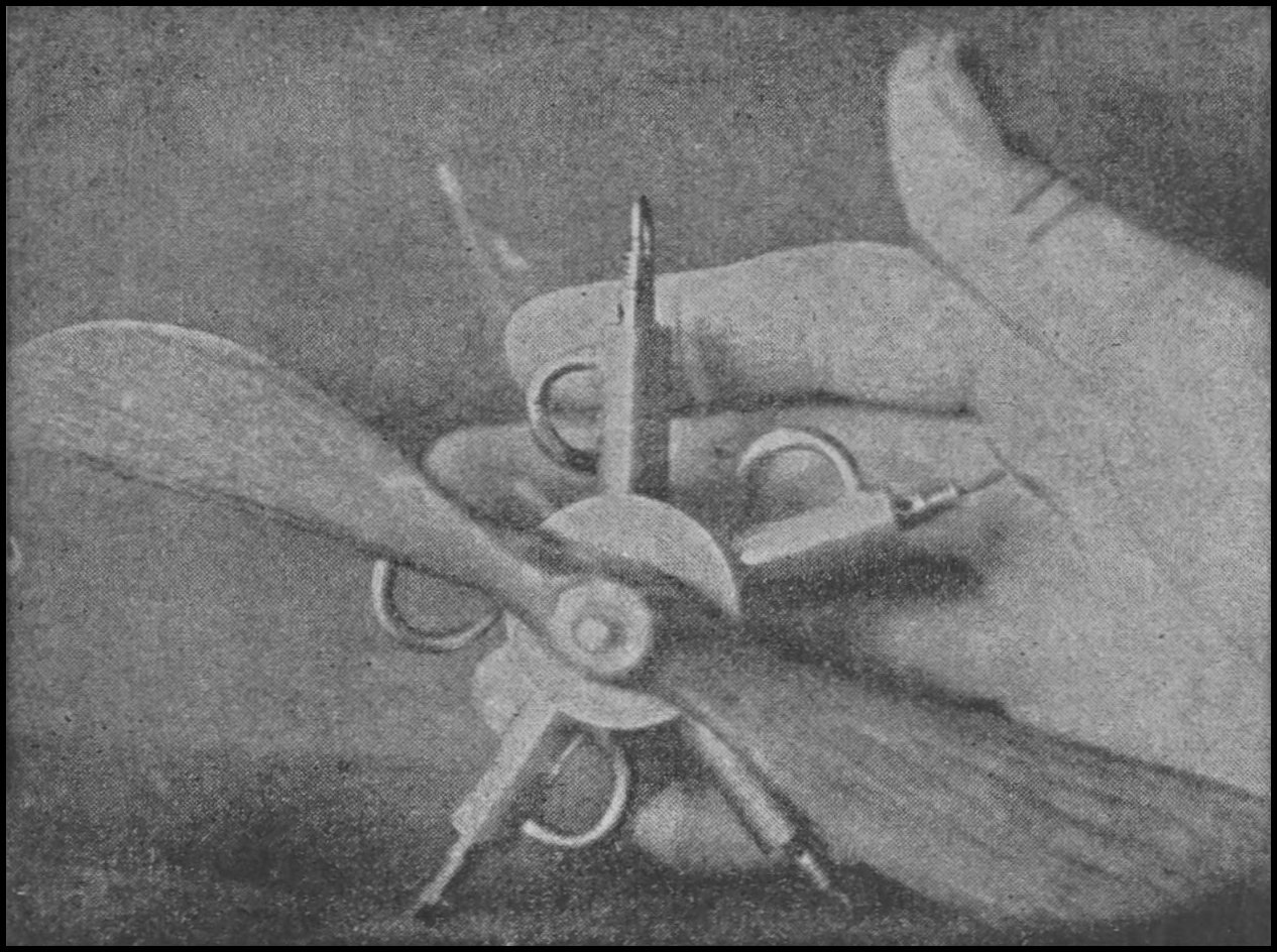 S or Motor Hooks—A piece of wire bent in a double hook to resemble the letter “S.” One end to be attached to the frame hook, the other serving as accommodation for the rubber strands.