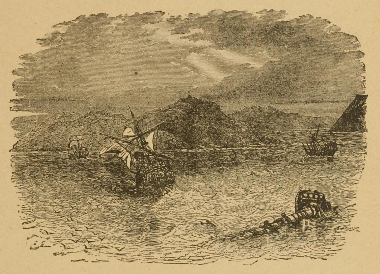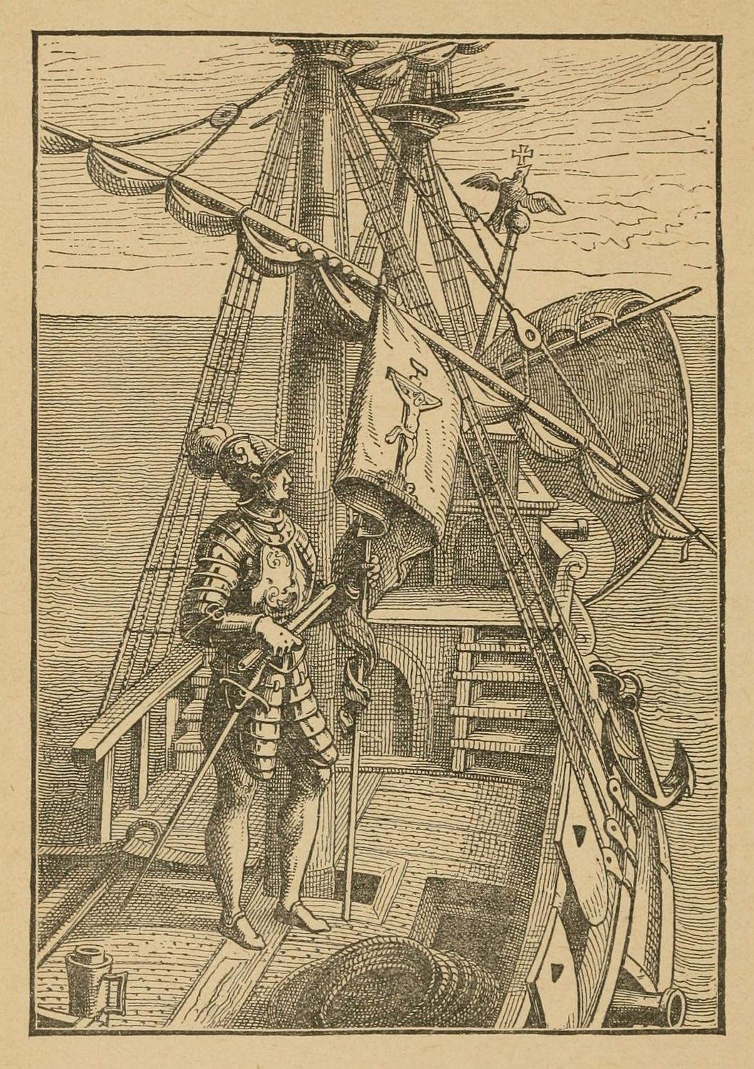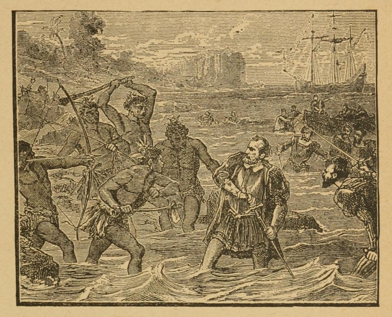 The Spanish in the Gulf of Mexico—Vasco Nuñez de Balboa concealed in a Cask—His Pardon—Shipwreck and Rescue of Explorers by Balboa—His Discovery of the Pacific—His Murder by ♠Anias—Expedition of Ponce de Leon—The Discovery of Florida and Search for the Fountain of Youth—Leon’s Death from poisoned Arrows—Discovery of the Mouths of the Pacific by Francis Garay—Lucas Vasquez de Ayllon in Florida—His Cruelty to the Natives—Their Retaliation—Verrazano on the Atlantic coast of North America—The Invasion of Florida by Pamphilo de Narvaez—His Disappointment, Retreat, and Death—The Captivity and Escape of four of his Followers—The Expedition of Hernando de Soto—Meeting with Juan Ortiz—His romantic Story—An Indian burned alive—A native Princess—At the foot of the Apalachian Mountains—Southward to Mavilla—Struggle with Indians—Westward ho! and Discovery of the Mississippi—De Soto in a new Character—His Death and Burial in the Mississippi—Escape of his Men under his Successor, Luis ♦Moscoso de Alvarado—Murder of Louis Cancello, the Missionary—Expedition of De Luna.