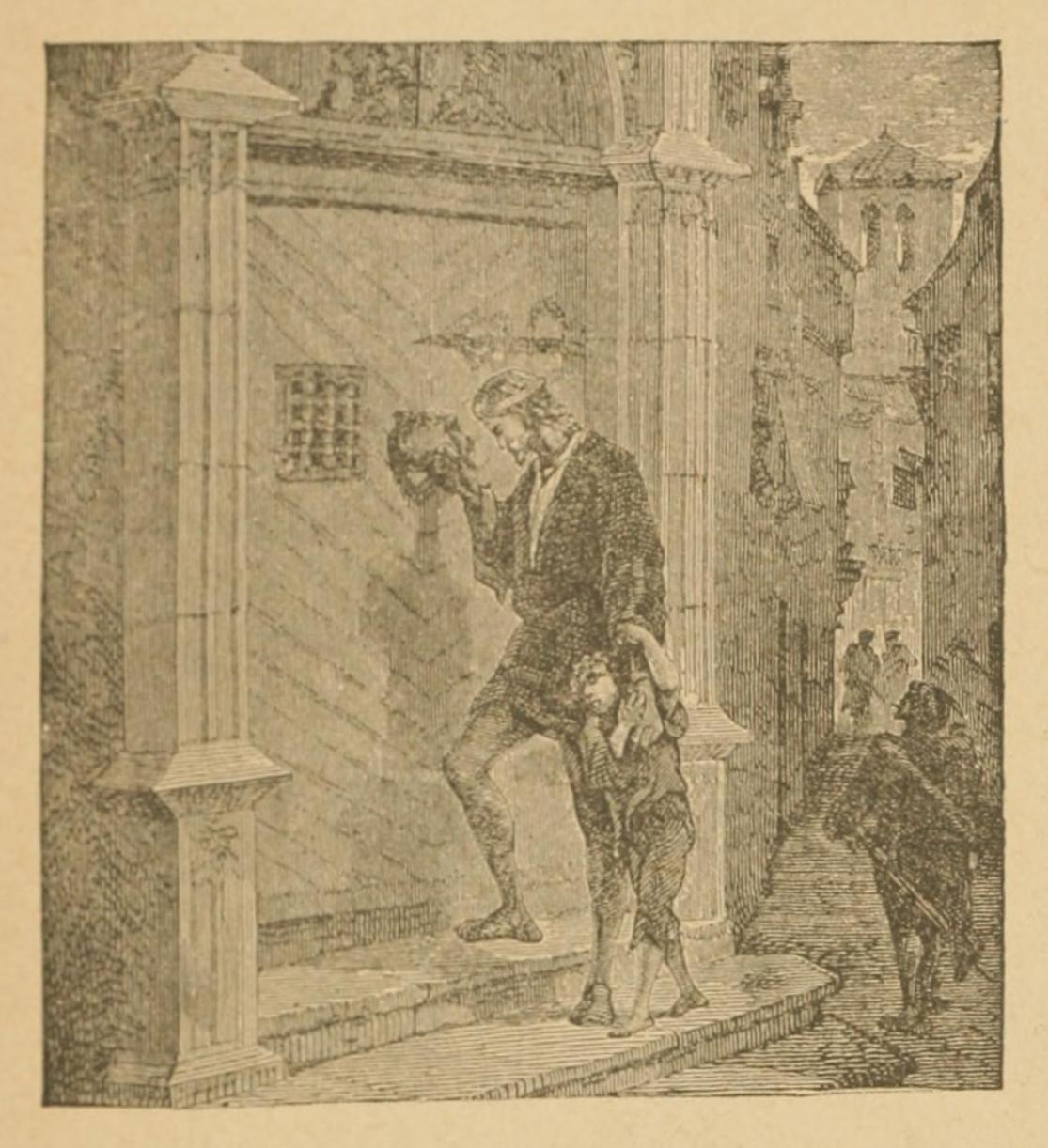 The ignorant pilots commissioned to work out the route conceived by the master-mind of the great mariner, returned to Lisbon without venturing beyond the beaten track; and in the ensuing year Columbus secretly left Lisbon, taking with him his young son Diego. We all know the story of his scornful reception at the court of Genoa, and of his arrival, after long wanderings to and fro, footsore, hungry and disheartened, at the gate of La Rabida, a Franciscan convent in Andalusia, to beg a little bread and water for his starving child.