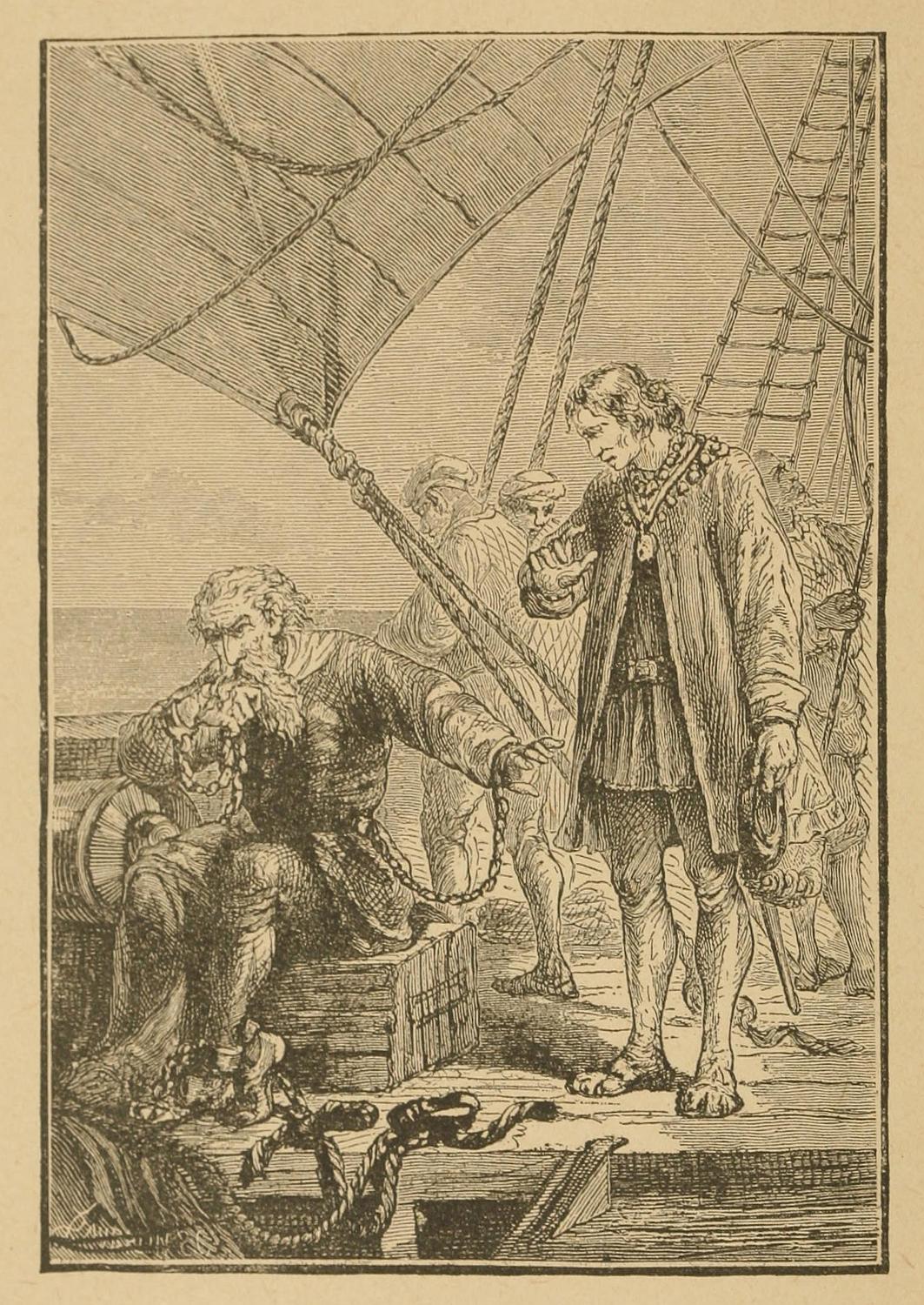 The white men took refuge in their ship, and all escaped unhurt except Thorvald himself, who received a wound in the side, from which he shortly afterward died. He was buried within sight of the Atlantic, on what is now Massachusetts Bay, and his sorrowing followers returned home with the terrible tidings in the ensuing spring.