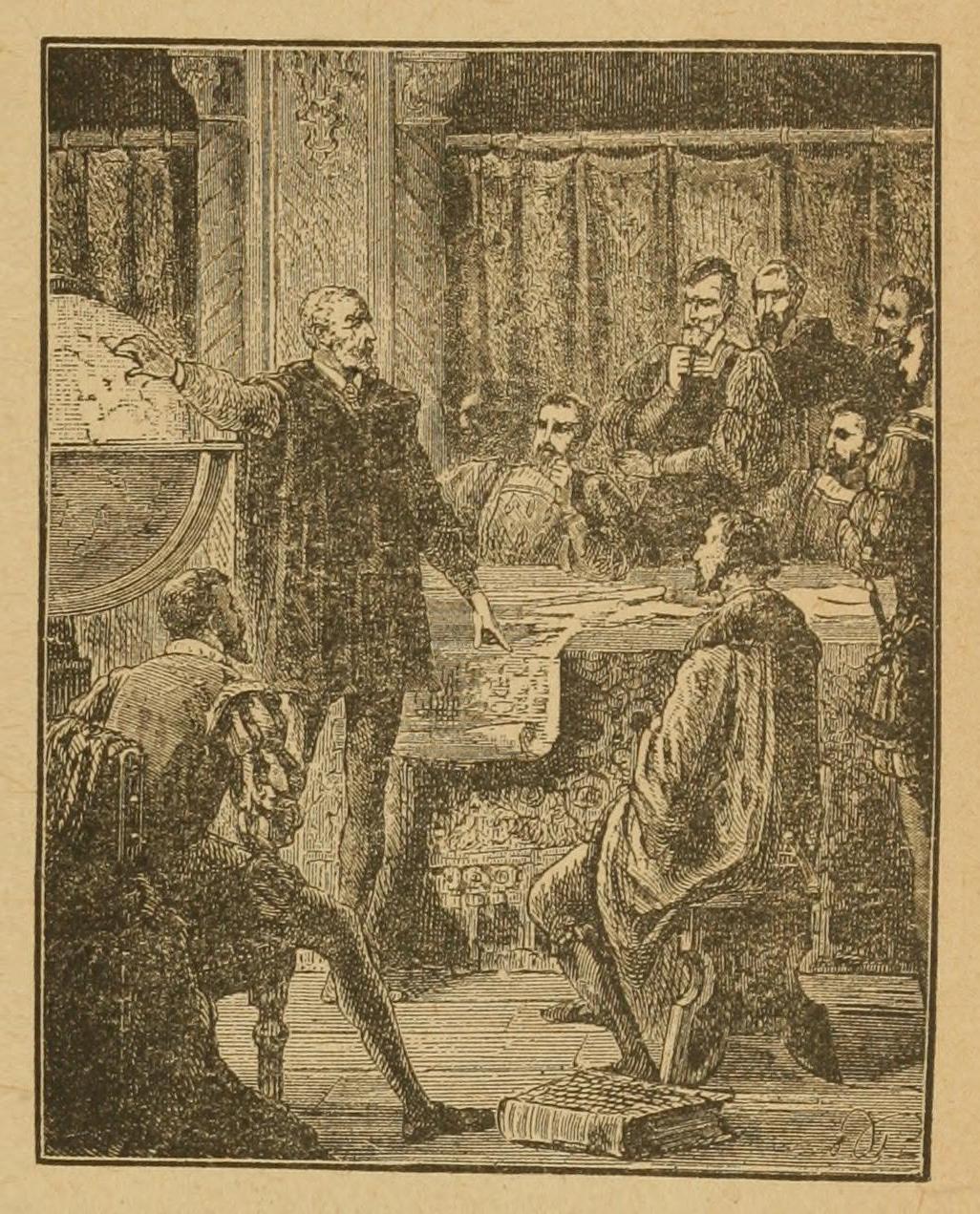The council to whose judgment the scheme of Columbus was submitted consisted of the Roderigo and Joseph already mentioned, and of the king’s confessor, Diego Ortiz de Cazadilla, Bishop of Ceuta, who condemned it without hesitation. The king, however, feeling perhaps not altogether convinced by the arguments adduced against it, privately sent out a vessel to test the route mapped out by Columbus, obtaining no result except that of driving the greatest man of the age away from his court, disgusted with the duplicity which, while openly discrediting their author, could thus seek to use his plans.