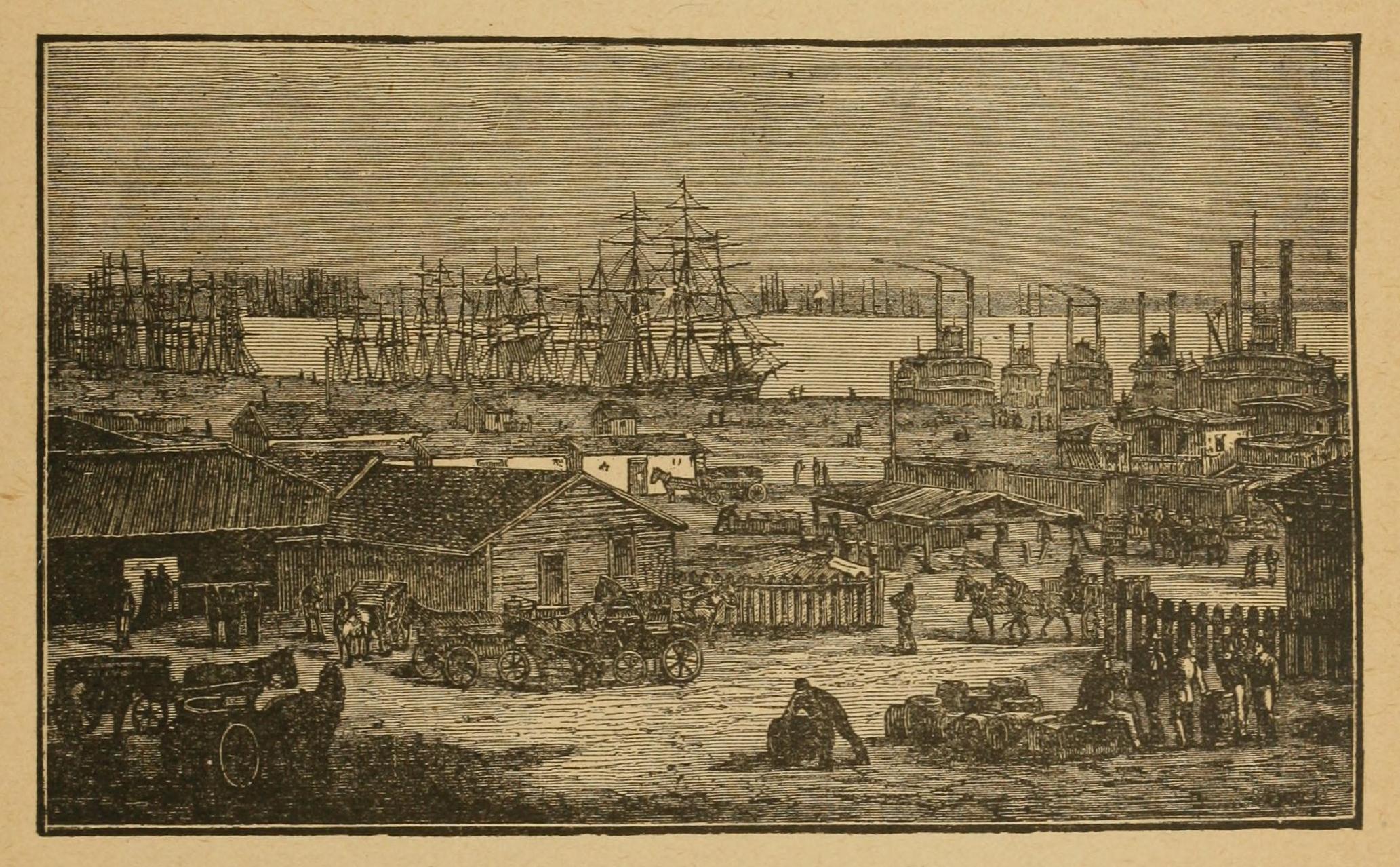 From end to end of the earth spread the news of the existence of vast seams of ore on the hitherto deserted shores of the Bay of San Francisco. The name of Sacramento, the infant settlement founded by Sutter, was in every mouth; and from the north and from the south, from the east and from the west, a stream of adventurers began to struggle toward it. In 1849 took place the overland emigration of no less than thirty thousand souls, men, women and children—half of them entering California by the old Gila route, associated with the Franciscan fathers of the earlier portion of our narrative; the other half literally forcing their way, step by step, across the rugged passes of the Rocky Mountains.