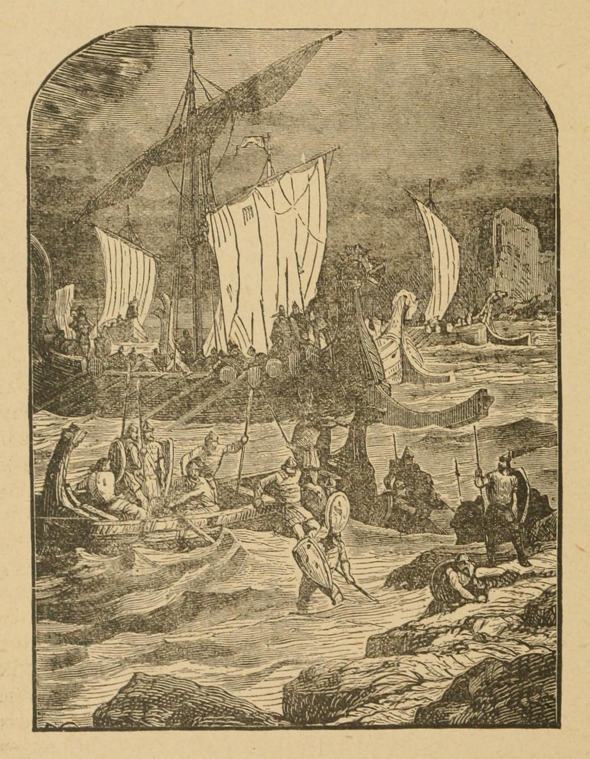 With the cruelty characteristic of the wild sea-kings of the North, Thorvald at once gave the signal for attack. The poor Skrællings, as he dubbed the natives, were quickly overpowered. One only escaped, and the others were foully murdered. No wonder that this was the beginning of the end of Thorvald’s enterprise. That very night, as he and his followers were sleeping peacefully, untroubled by any remorse for their evil deeds, they were roused by the war-whoop of the Skrællings, come at the bidding of the one survivor to avenge his comrades.