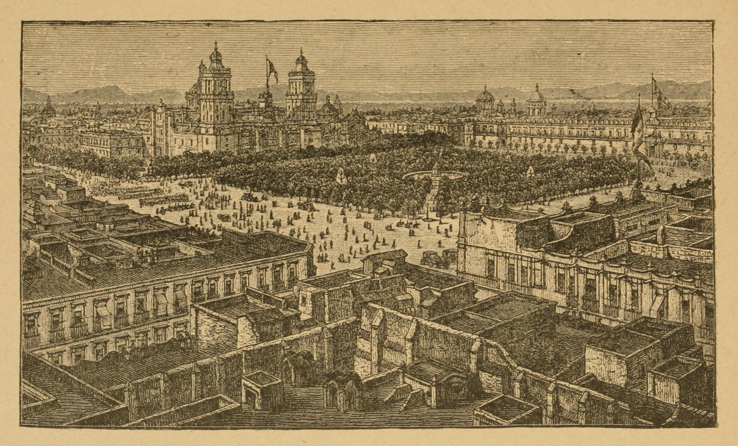 A little later, a détour was made to visit the ruins of Le Gran Quivera, situated on a plain some ten miles distant from the mountains, and supposed to be identical with one of the seven cities of Cibola, visited by Father Kino. The ruins were found to be still in excellent preservation; the remains of a large temple and of a skillfully-constructed aqueduct for bringing water from the heights above the town were distinctly made out, and the Indians told many interesting traditions of the days when “Le Gran Quivera had been a mighty Aztec metropolis.”