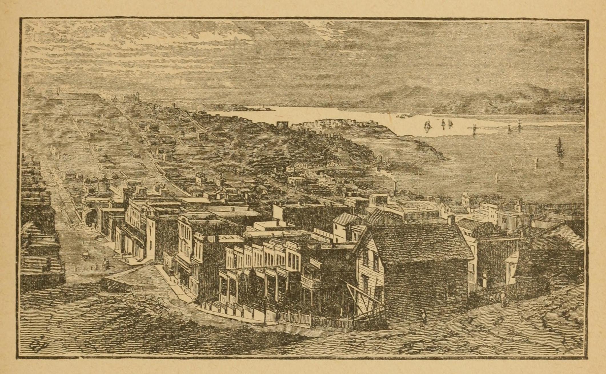 On the shores of the Humboldt River a separation took place in the ranks of those still able to proceed, some making for the head of the Sacramento Valley, others choosing the better route to the American fork of the Sacramento River. Of the former, nearly all perished before reaching their destination; of the latter, many were rescued by the noble heroism of parties sent out from California to their relief. Enough of the original thirty thousand survived to fill the hitherto desolate valley of the new south-western state with life. Every ensuing spring brought new comers; the little settlement of Yerba Buena became the port of San Francisco, which, from “a scattering town of tent and canvas houses,” grew in four short months to a populous city, “displaying,” to quote the words of Bayard Taylor, “street after street of well-built edifices, filled with an active and enterprising people, and exhibiting every mark of permanent commercial prosperity;” while on every stream clustered the huts of miners, and from every sheltered nook rose the smoke of the settler’s cabin.
