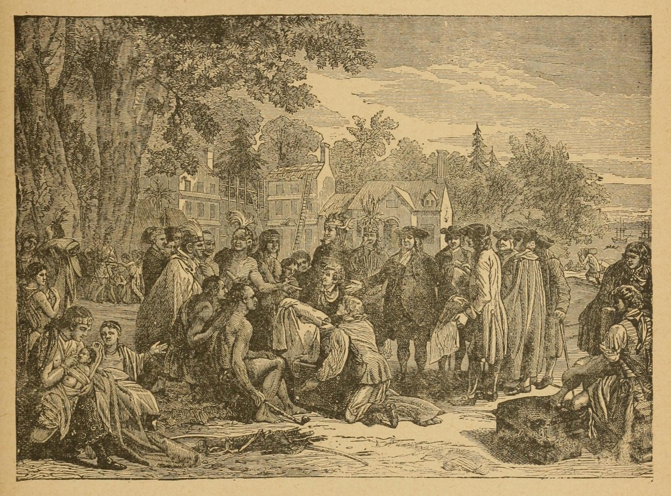 Murder of Captains Stone and Oldham—Massacre on Block Island—Intervention of Roger Williams—The Last Stand of the Pequods—Emigration of Eaton and Davenport to Connecticut—Foundation of New Haven—First Settlement of Refugees in Carolina—Their Lands given to eight Noblemen—Arrival of Cavaliers and Planters—Misery of the Colonists—Relief at last—Oglethorpe’s first Settlement in Georgia—His Meeting with the Indian Chiefs—Pennsylvania granted to Penn—His Reception in Delaware—His Voyage up the River—Treaty with the Indians—Foundation of Philadelphia—Rapid Growth of Pennsylvania—Foundation of Harrisburg—The French and Indian War—Foundation of Pittsburg—The War of Independence—Freedom won for the Thirteen Original States of the Union—Declaration of Independence on the 4th July, 1776.