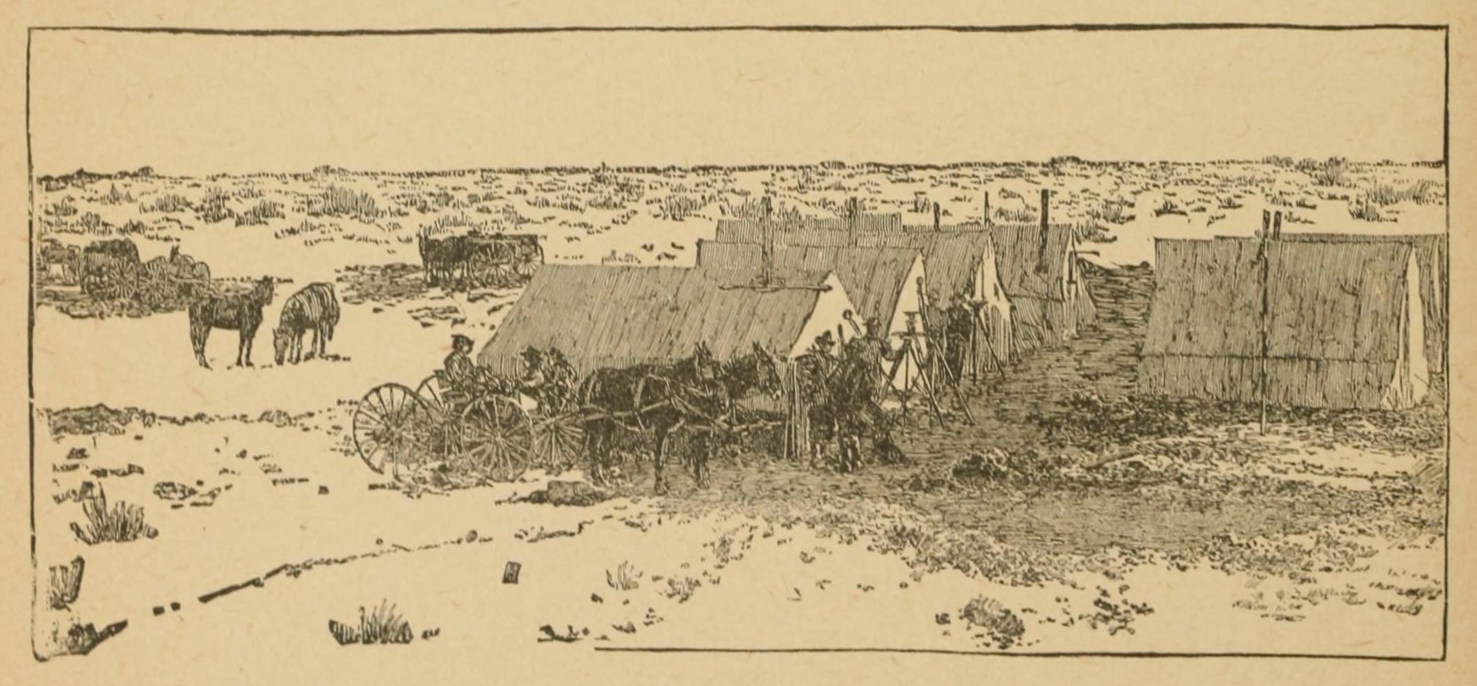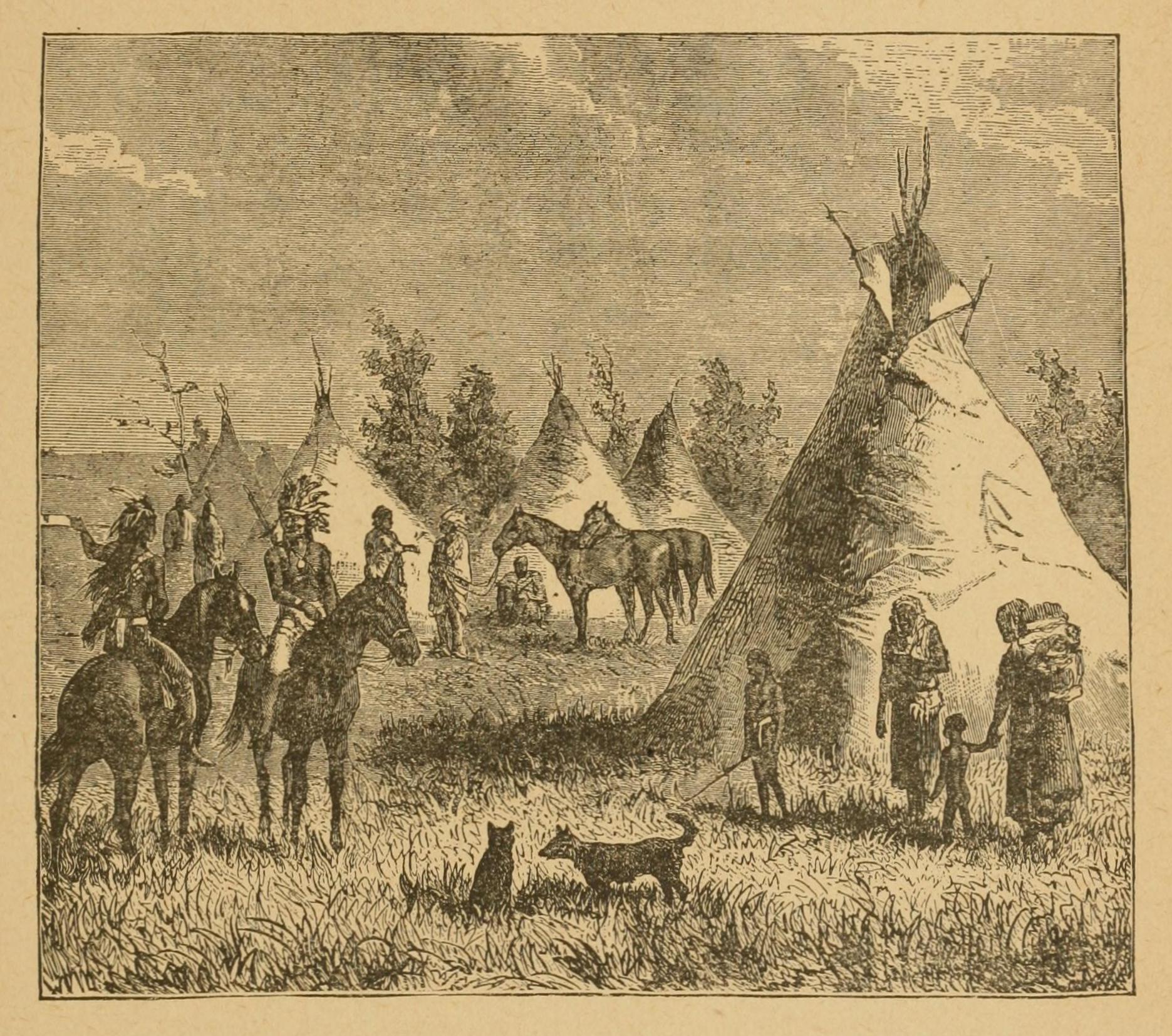 Another moment and the Navajo war-whoop rang out, and about a dozen dusky forms, mounted on splendid horses, were seen advancing toward the camp. “We’d better go behind the wagon,” suggested one of the white men. From behind the friendly shelter of the wagon, therefore, the heroes watched the approach of their enemies, who, however, to their great surprise, suddenly disappeared.