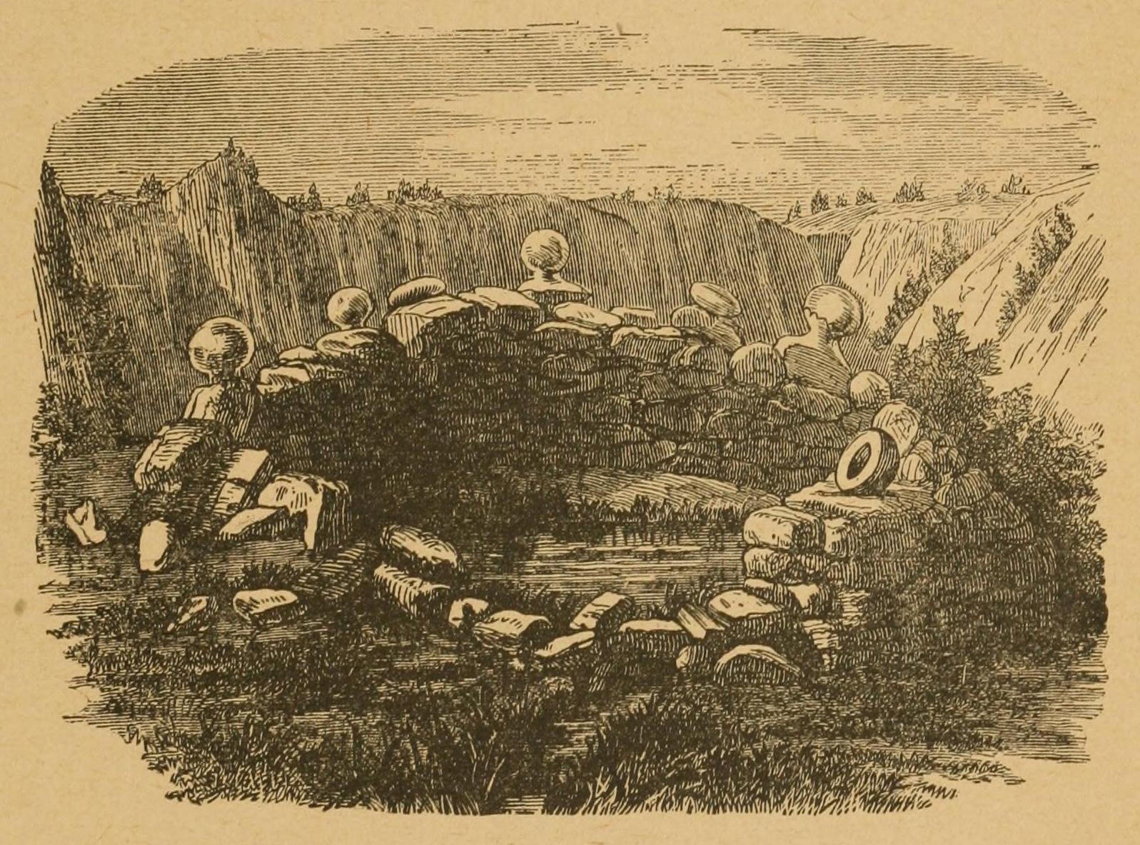 Entering the town of Zuni, a ruin differing but little in general character from that of El Moro, the travelers were courteously received by the cacique, or chief—a fine-looking old man, with large, intelligent, dark-blue eyes—wearing a Spanish shawl and trowsers. He conducted them over his city, pointing out to them, among its special features, a sacred spring, from which neither man nor beast was ever allowed to drink, the genius of the place avenging any such desecration by instant death.