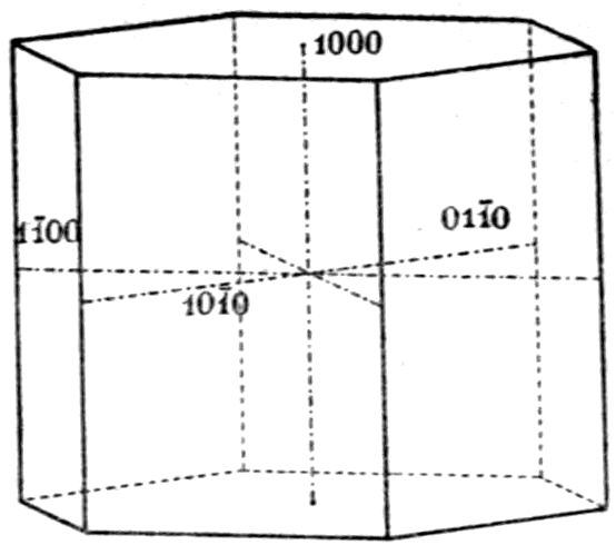 Nothing is more remarkable than the great variety of geometrical shapes which the crystals of the same substance, derived from different localities or produced under different conditions, are observed to display. One of the commonest of minerals, calcite, carbonate of lime, shows this feature admirably; the beautiful large rhombohedra from Iceland, illustrated in Fig. 5, or the hexagonal prisms capped by low rhombohedra from the Bigrigg mine at Egremont in Cumberland, shown in Fig. 6, appear totally different from the “dog-tooth spar” so plentifully found all over the world, a specimen of which from the same mine is illustrated in Fig. 7. No mineral specimens could well appear more dissimilar than these represented on Plate III. in Figs. 6 and 7, when seen side by side in the mineral gallery of the British Museum (Natural History) at South Kensington. But all are composed of similar chemical molecules of calcium carbonate, CaCO3; and when the three kinds of crystals are investigated they are found to be identical in their crystalline system, the trigonal, and indeed further as to the subdivision or class of that system, which has come to be called the calcite class from the importance of this mineral.