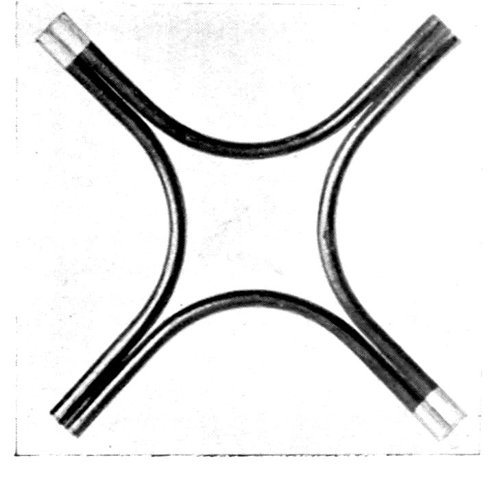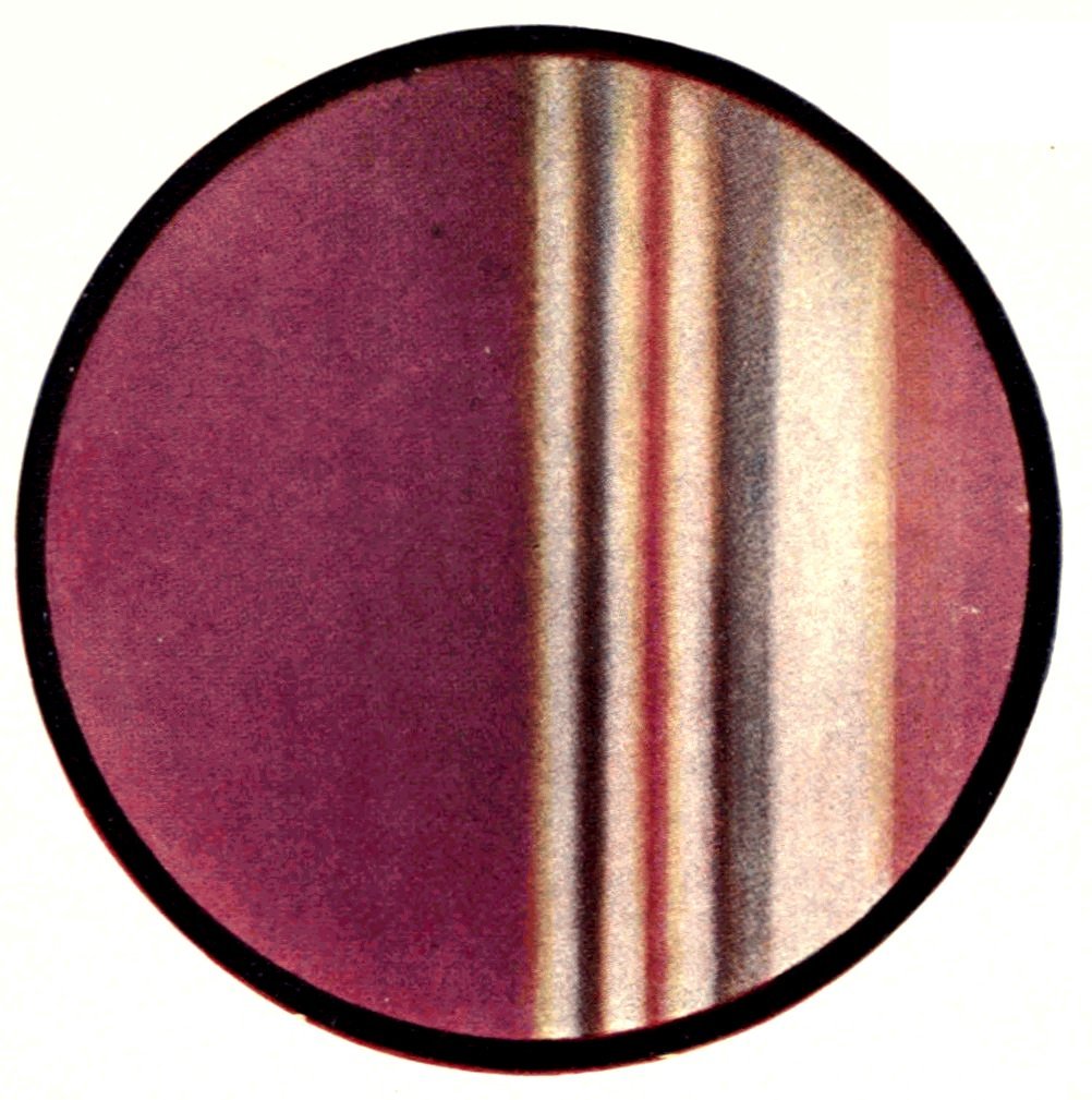 An interesting and very beautiful lecture experiment was performed by the author in a lecture a few years ago at the Royal Institution, which illustrated in a striking manner this fact that the light reaching the eye from a crystal is of two kinds, namely, white light reflected from the exterior faces and coloured light which has penetrated the crystal substance and emerges refracted and dispersed as spectra. Two powerful beams of light from a pair of widely separated electric lanterns were concentrated on a cluster of magnificent large diamonds, kindly lent for the purpose by Mr Edwin Streeter, and arranged in the shape of a crown, it being about the time of the Coronation of His late Majesty King Edward VII. The effect was not only to produce a blaze of colour about the diamonds themselves, but also to project upon the 9ceiling of the lecture theatre numerous images in white light of the poles of the electric arc, derived by reflection from the facets, interspersed with equally numerous coloured spectra derived from rays which had penetrated the substance of the diamonds, and had suffered both refraction and internal reflection.