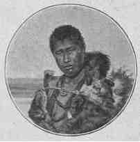 Une scène inoubliable. Le temps est absolument calme, l'air d'une limpidité absolue. Le repos de la nuit descend lentement sur la nappe déjà enveloppée d'une pénombre transparente; tout là-haut, les géants de pierre profilent leurs masses mauves dans la pâleur bleuâtre d'un ciel d'acier. Soudain dans le grand silence éclate un brouhaha de cris et de hululements... Un canot chargé d'indigènes approche; hommes, femmes et enfants braillent à qui mieux mieux, tandis que les chiens[Pg 61] joignent leurs aboiements à ces clameurs. L'embarcation accoste; toute la bande se précipite à bord comme à l'abordage; chacun veut arriver bon premier, afin de pouvoir échanger au meilleur prix possible les marchandises de troc, de superbes peaux, que ces primitifs donnent pour quelques feuilles de tabac.