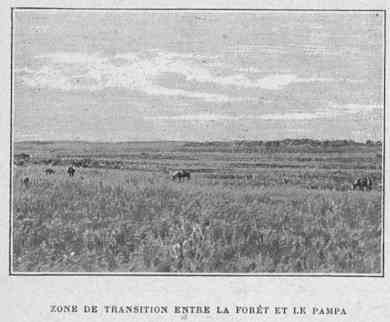 «La carte indique des montagnes, des lacs, des rivières, raconte notre voyageur, mais tous ces détails topographiques ne sont que le produit de l'imagination des cartographes. Ainsi à la place d'un grand lac, près de Rio-Grande, je découvris une colline boisée, la plus haute de ces parages; du sommet d'un hêtre, situé au point culminant et d'où la vue s'étendait sur toute la région, je ne pus même découvrir aucune nappe.