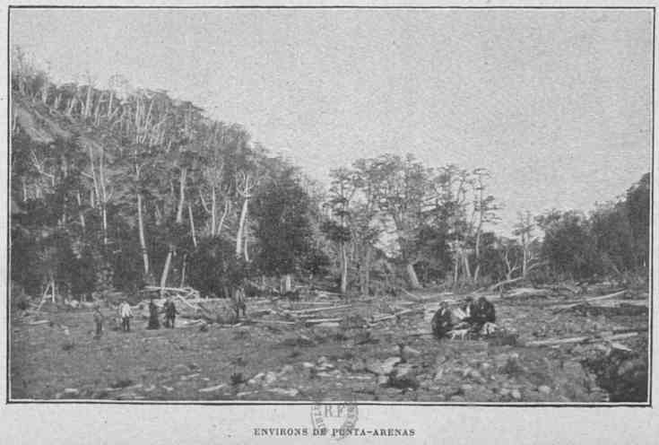 «Souvent au milieu de la forêt s'ouvre une clairière noire, tranchée par l'incendie. Sur le sol roussi se tortillent, dans des attitudes grimaçantes de squelettes, des troncs carbonisés, éclatés, dont la vue laisse une impression de souffrance et de mort. Ces incendies sont allumés par les Indiens. Si Magellan avait visité ces parages, on comprendrait le motif qui l'a déterminé à donner à cette île le nom de Terre de Feu..