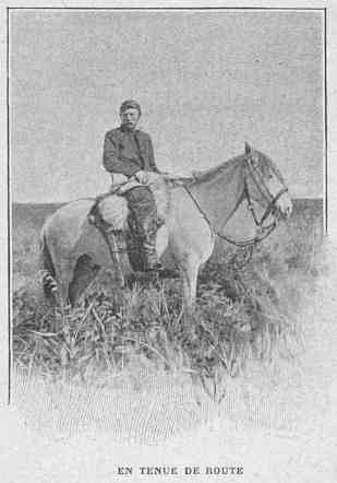 «A l'approche des montagnes, la marche devient plus difficile. Maintenant les belles pelouses rencontrées pendant les premiers jours du voyage sont remplacées par des marais et par des fondrières; à chaque pas les bêtes s'affaissent dans la vase; on n'a pas le temps de courir au secours de l'une qu'une autre s'enlize. Ailleurs le sol est tout parsemé de trous, dissimulés sous la végétation, produits par le suintement des sources;[Pg 36] leur existence n'est révélée que par la teinte verte plus claire des plantes qui les recouvrent.»