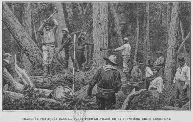 Tranchée pratiquée dans la forêt pour le tracé de la frontière Chilo-Argentine | 161 |