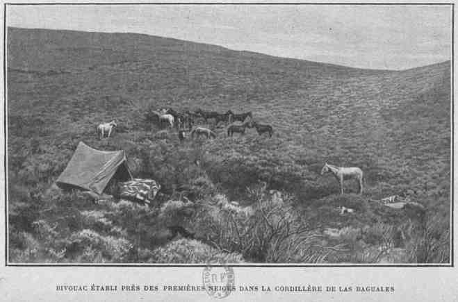 Bivouac établi près des premières neiges dans la Cordillère de Las Baguelas | 169 |