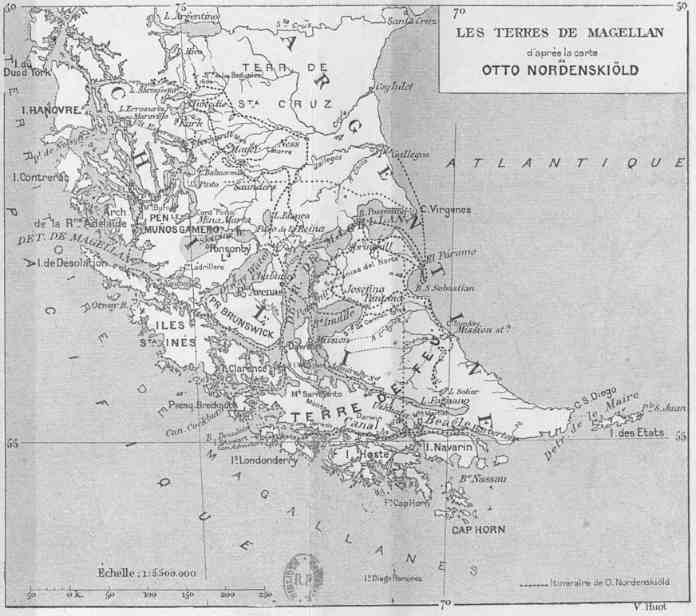 En France, on sait les difficultés matérielles que rencontrent toutes les entreprises scientifiques du genre de celle que projetait le docteur O. Nordenskjöld. Nos Universités ne disposent pas, comme les établissements similaires étrangers, de fondations permettant aux chercheurs de poursuivre au loin leurs recherches sur le terrain, et chez nous l'initiative privée, si prompte dans certains cas, demeure le plus souvent indifférente aux œuvres qui ont pour objet l'étude de la terre.