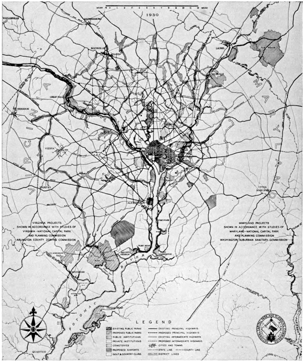 The Manual deals historically with the founding and development of the National Capital. Beginning with the twentieth century we find a new impetus given to the development of the city by the McMillan Park Commission of 1901. Its work has been carried forward by the Commission of Fine Arts and the National Capital Park and Planning Commission, in cooperation with the Government of the District of Columbia, including the Zoning Commission; also, of course, in cooperation with the President of the United States, officials of the Government, and the Congress of the United States, which by virtue of the Federal Constitution exercises “exclusive legislation in all cases whatsoever” over the District of Columbia.