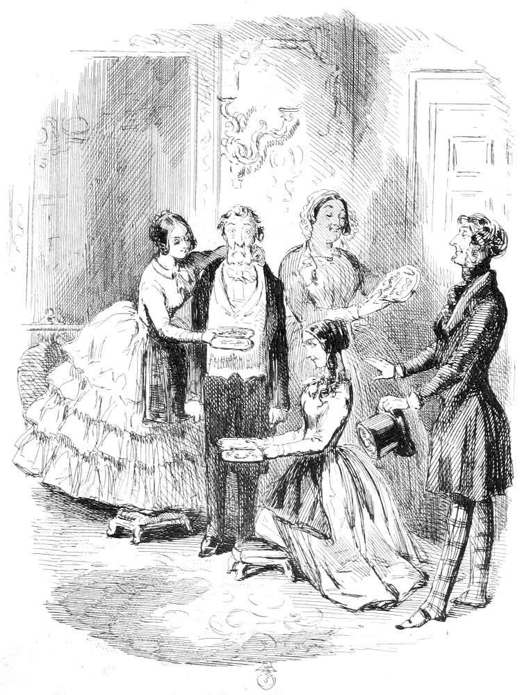 This curious question was coldly put by a gentlewoman in morning undress to a man in gown and slippers. The reader, who is always permitted to wear the old cloak of the old stage mystery—the cloak that maketh invisible—must at once perceive the tender relation that lives and flourishes between the interesting person who puts this familiar interrogative, and the being who suffers it. They are man and wife. The marriage certificate is legible in every line of Mrs. Jericho’s face. She asks for money with a placid sense of right; it may be, strengthened by the assurance that her debtor cannot escape her. For it is a social truth the reader may not have overlooked, that if a man be under his own roof, he must be at home to his own wife.