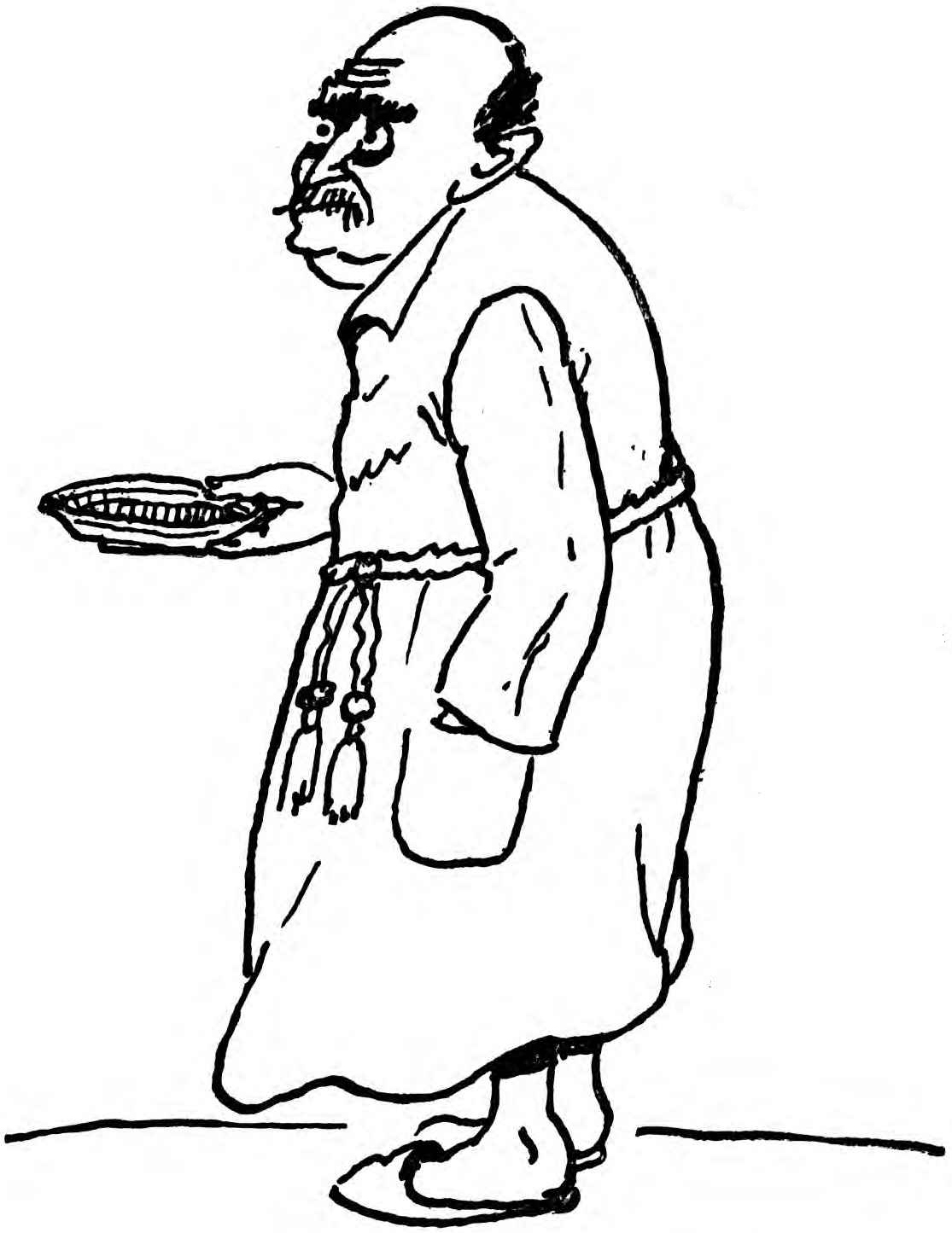 Finally, don’t paint your front hall water-cooler with floral scenes. Go to some good marine painter and instruct him to make a decoration in keeping with the purpose of the cooler. There is water inside the vessel, is there not? Then let him paint water outside. Better still, coat your cooler with mucilage and lightly spray powdered mica upon it. But don’t,[147] whatever you do, attempt to ornament your cooler with festoons of gilt tassels. Your cooler is not the place for tassels. I know it is done, but my last and only word on the subject is, Don’t. Tassels of any kind are absolutely out of key on your cooler. They should be kept for your umbrella, where they will give that personal touch that is distinctive.